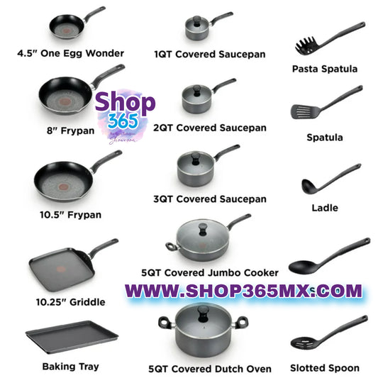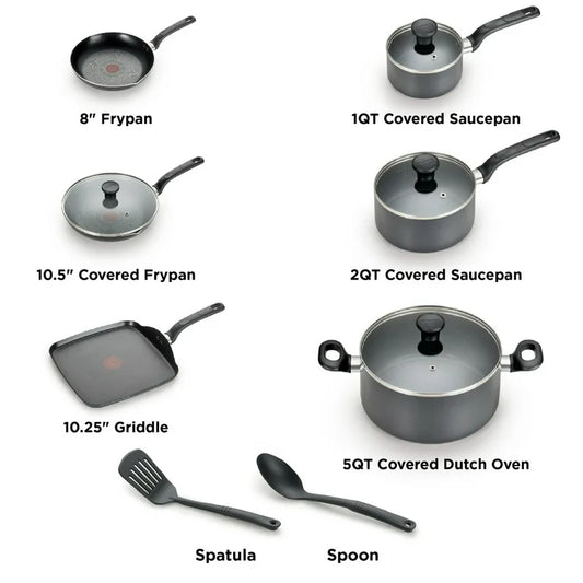 T-fal Utensilios de cocina antiadherentes de fácil cuidado, juego de 20 piezas, gris