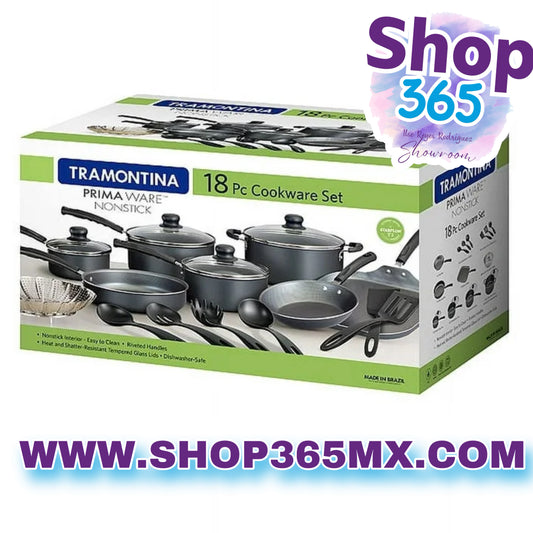 Juego de utensilios de cocina antiadherentes Tramontina Primaware de 18 piezas, negro