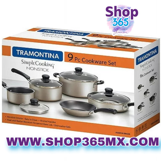 Juego de ollas antiadherentes Tramontina de 9 piezas, color champagne
