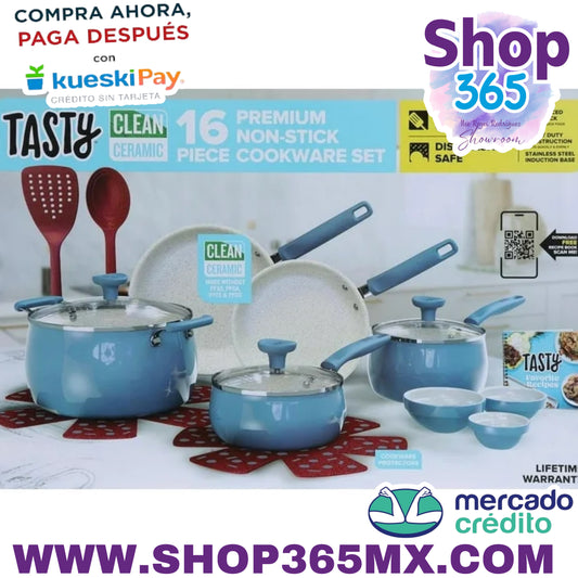 Tasty Clean Ceramic Juego de utensilios de cocina de aluminio antiadherentes de 16 piezas, color Slate Blue