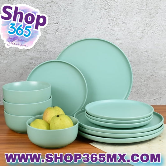 Mainstays Alessandra Juego de vajilla de gres menta mate de 12 piezas