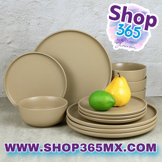 Mainstays Alessandra Juego de vajilla de gres cafe mate de 12 piezas