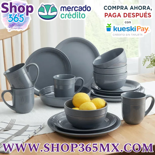 Mainstays Chiara Vajilla de Gres Gris de 16 Piezas