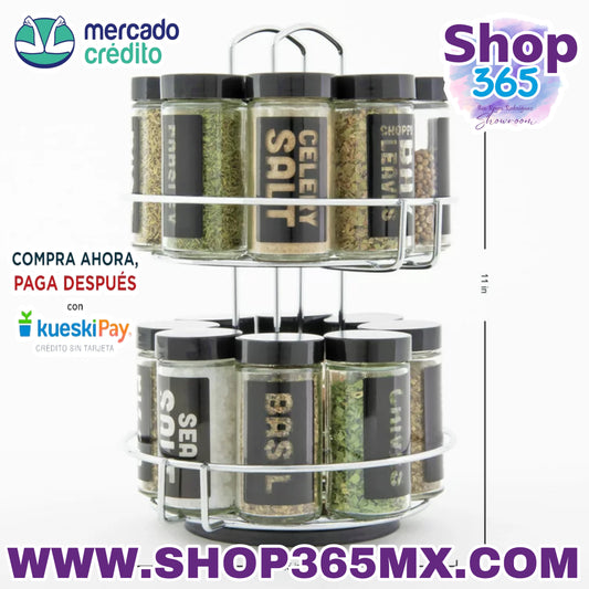 Kamenstein Especiero relleno giratorio de alambre cromado para 16 frascos, 11 pulgadas