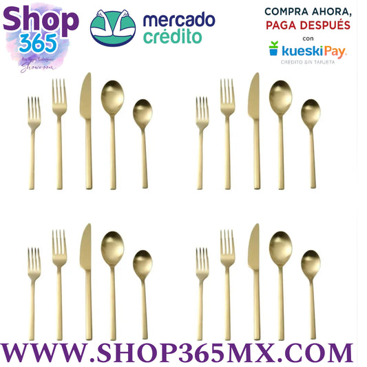 Better Homes & Gardens Holden Juego de Cubiertos de Acero Inoxidable de 20 Piezas de Oro