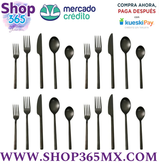 Better Homes & Gardens Juego de Cubiertos Holden de Acero Inoxidable de 20 Piezas Negro Mate