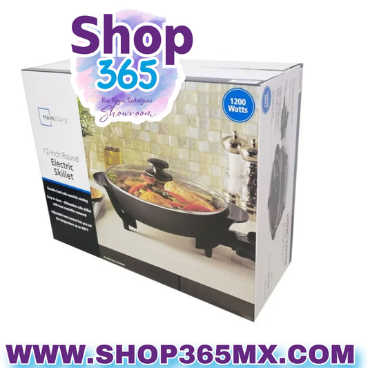 Mainstays Sartén eléctrica redonda antiadherente de 12 pulgadas con cubierta de vidrio, color negro