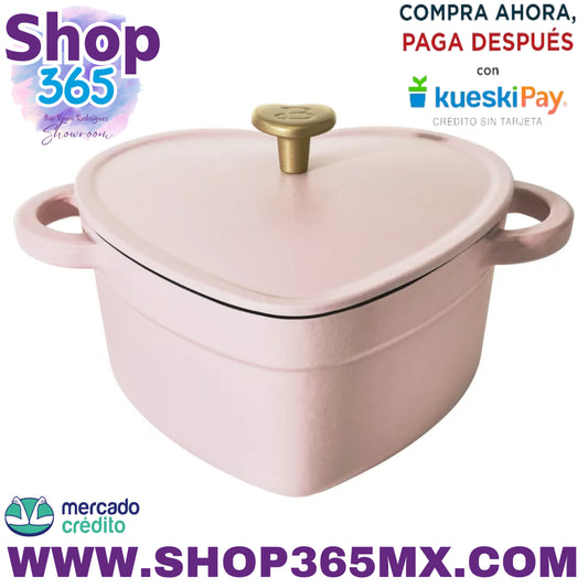 Hermoso horno holandés con forma de corazón de hierro fundido de 2 cuartos, champán rosado de Drew Barrymore