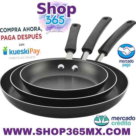 Farberware Sartén antiadherente de aluminio de fácil limpieza, 3 piezas, juego de sartén, color negro
