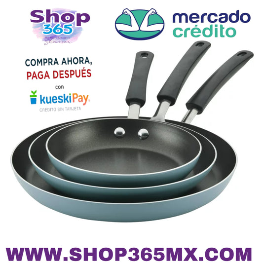 Farberware Sartén antiadherente de aluminio de fácil limpieza, 3 piezas, juego de sartén, color azul