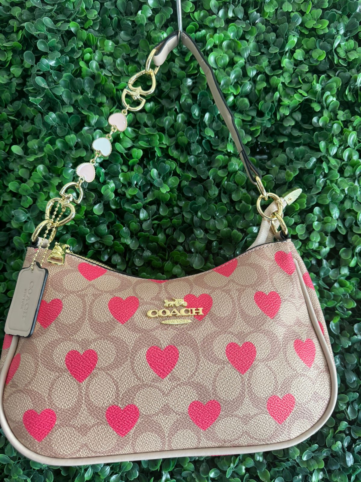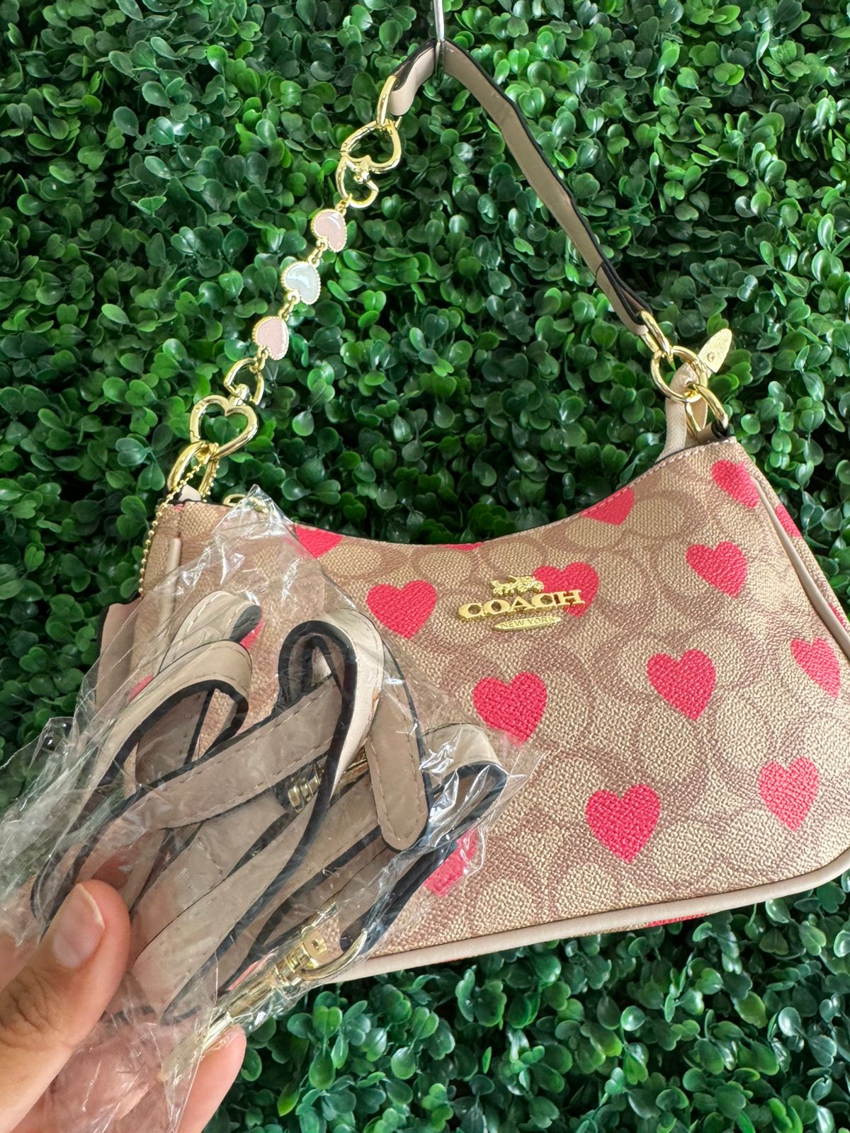 A BOLSA INSPIRACION COACH CAFE CLARO CORAZONES ROSAS DOBLE CORREA CALIDAD PREMIUM