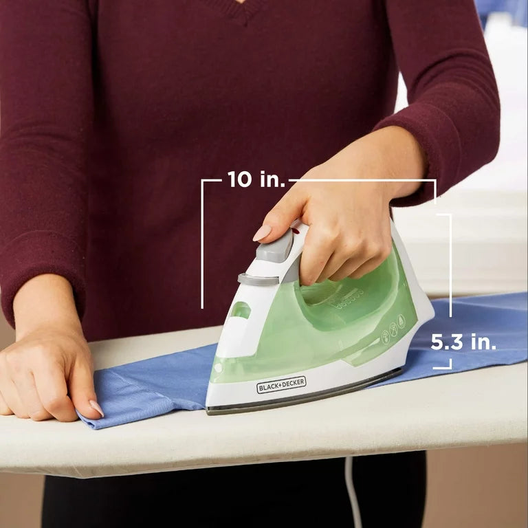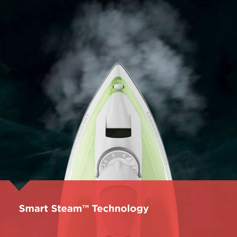 Elimina las arrugas duras. Esta plancha de vapor compacta cuenta con la tecnología SmartSteamTM, que elimina las conjeturas del planchado al regular automáticamente los niveles de vapor en función de la configuración de la tela que seleccione. La mejor parte es que puede controlar la temperatura y el vapor con un dial fácil. Además, la suela antiadherente TrueGlideTM se desliza fácilmente sobre cualquier tipo de tela, y el tamaño compacto es perfecto para apartamentos, dormitorios y viajes. Negro + Decker Easy Steam Plancha compacta