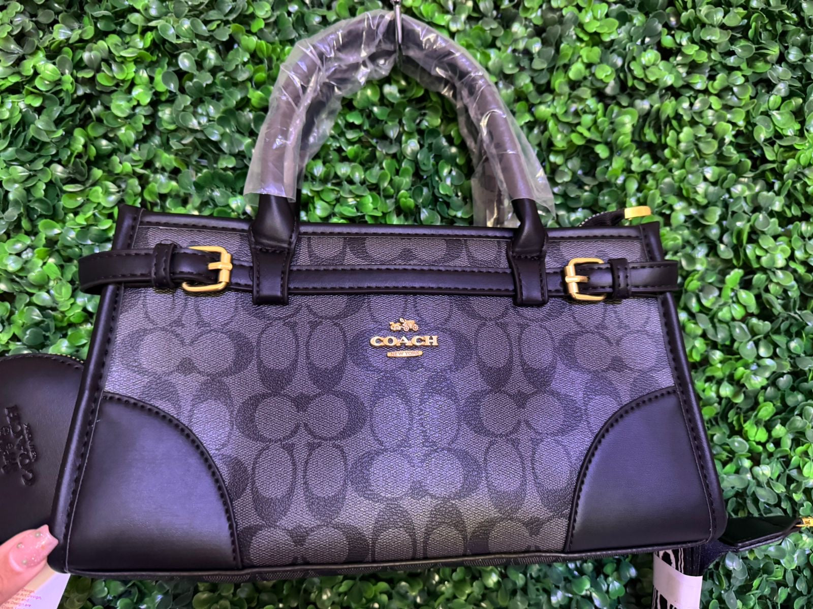 Bolsa de mano Coach negra con correa y de mano además monedero colgante incluido