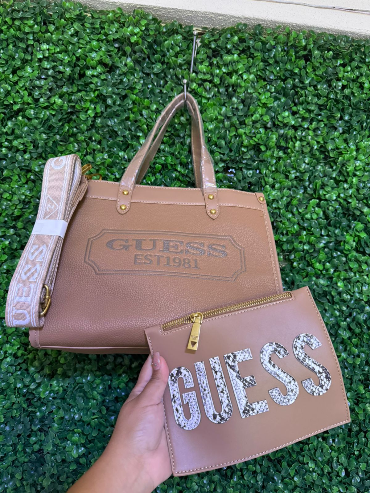 Bolsa Guess Café con monedero incluido y correa súper espaciosa