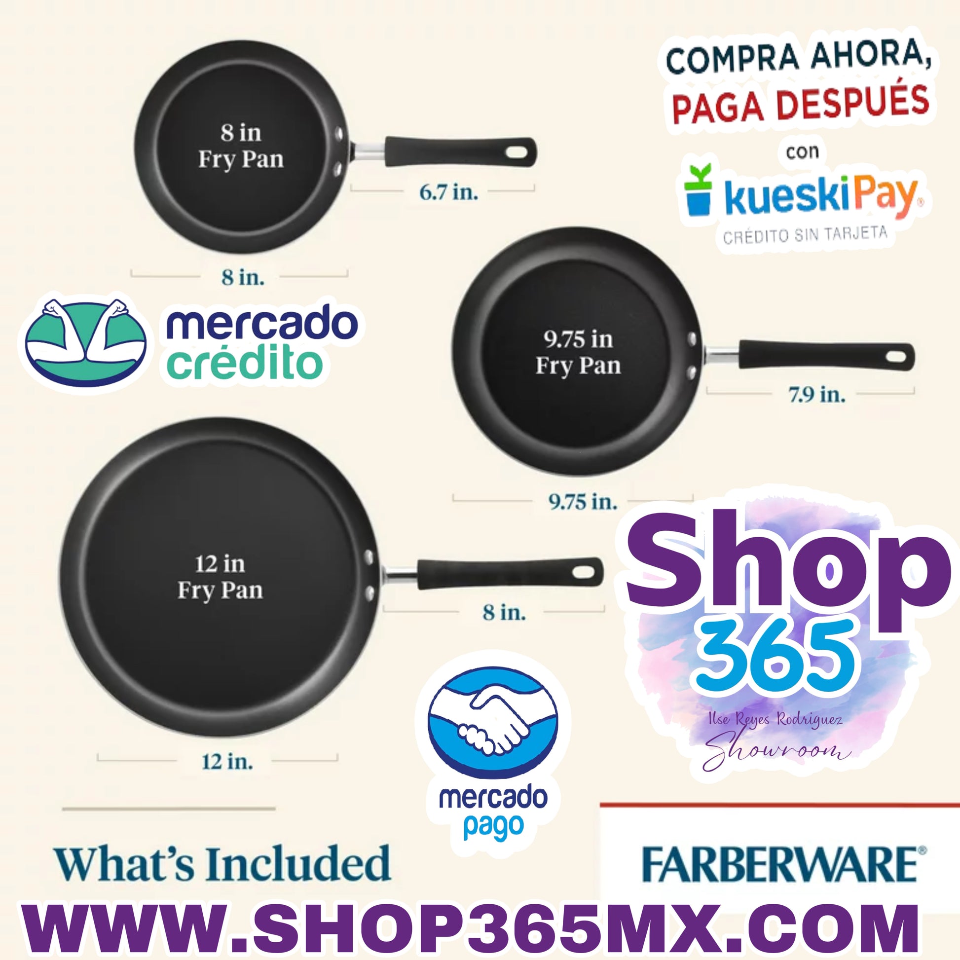Obtenga un triple juego de valor, conveniencia moderna y el rendimiento de calidad del que han dependido los cocineros caseros desde 1900 con el paquete triple de sartén antiadherente Easy Clean de Farberware. El paquete triple apto para lavavajillas incluye una variedad esencial de sartenes para cocinar todos los días. Las sartenes de 8, 9,75 y 12 pulgadas cuentan con interiores antiadherentes de larga duración para una excelente liberación de alimentos de las recetas favoritas de la familia, y exteriores coloridos agregan un toque de estilo a cualquier cocina. Aptas para horno hasta 350 °F, las sartenes están fabricadas con aluminio resistente que se calienta rápida y uniformemente, lo que reduce los puntos calientes que pueden quemar los alimentos. Los mangos con doble remachado ayudan a los cocineros a moverse por la cocina con confianza y, lo mejor de todo, Farberware Easy Clean se gana su nombre porque cada artículo es apto para lavavajillas para lograr la combinación perfecta de función y estilo. Complace a la familia con sus comidas favoritas y facilite la cocción y la limpieza, con la comodidad apta para lavavajillas del paquete triple de sartén antiadherente de aluminio Farberware Easy Clean. Farberware Juego de sartén/sartén/sartén antiadherente de aluminio de fácil limpieza, 3 piezas, negro: El paquete triple de sartenes antiadherentes duraderas y aptas para lavavajillas incluye sartenes de 8, 9,75 y 12 pulgadas. La construcción de aluminio se calienta rápida y uniformemente, lo que reduce los puntos calientes que queman los alimentos. Los mangos resistentes con doble remache están contorneados para un agarre cómodo en la mano. Este utensilio de cocina es apto para horno hasta 350 grados F. Garantía de garantía de calidad