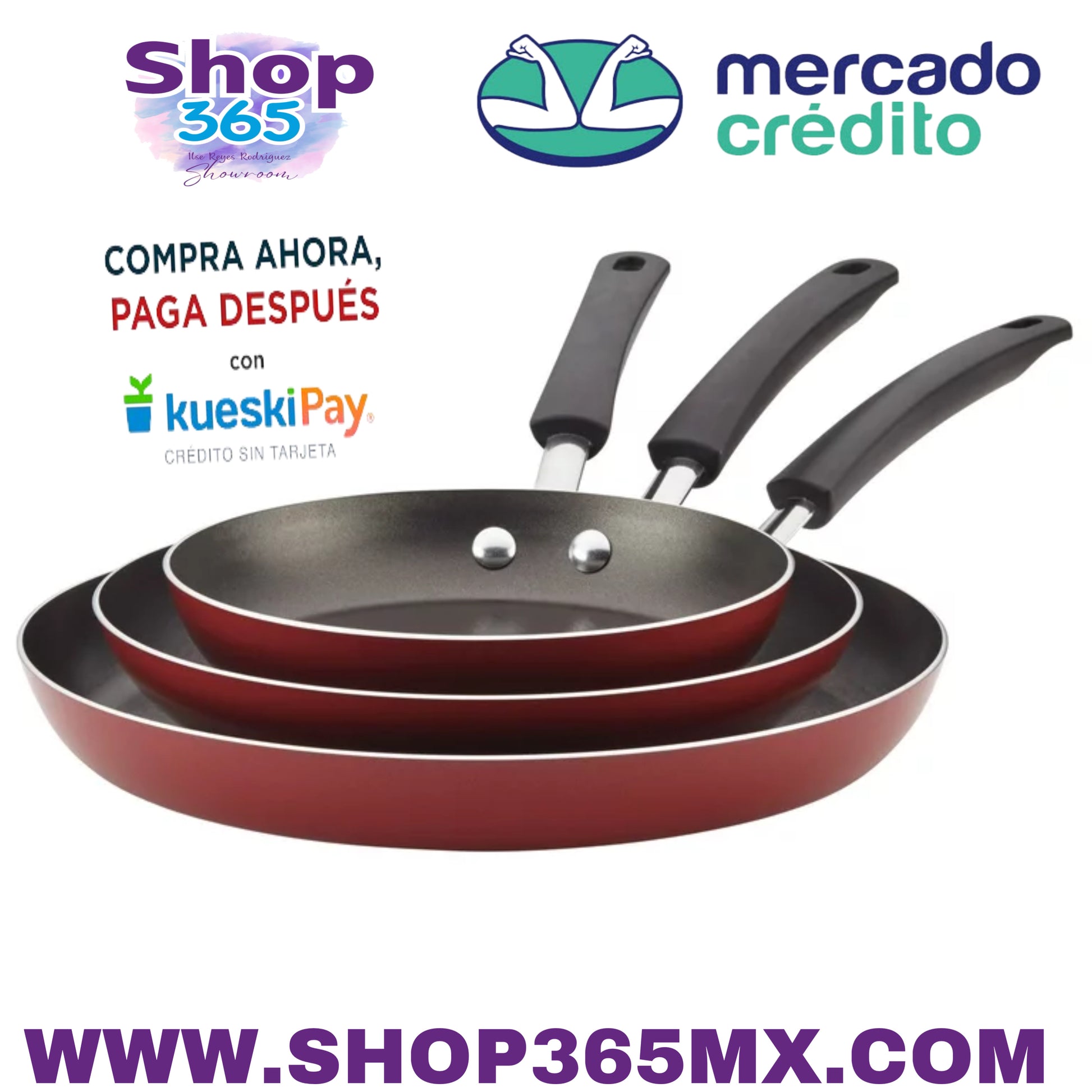 Farberware Sartén antiadherente de aluminio de fácil limpieza, 3 piezas, juego de sartén, color rojo