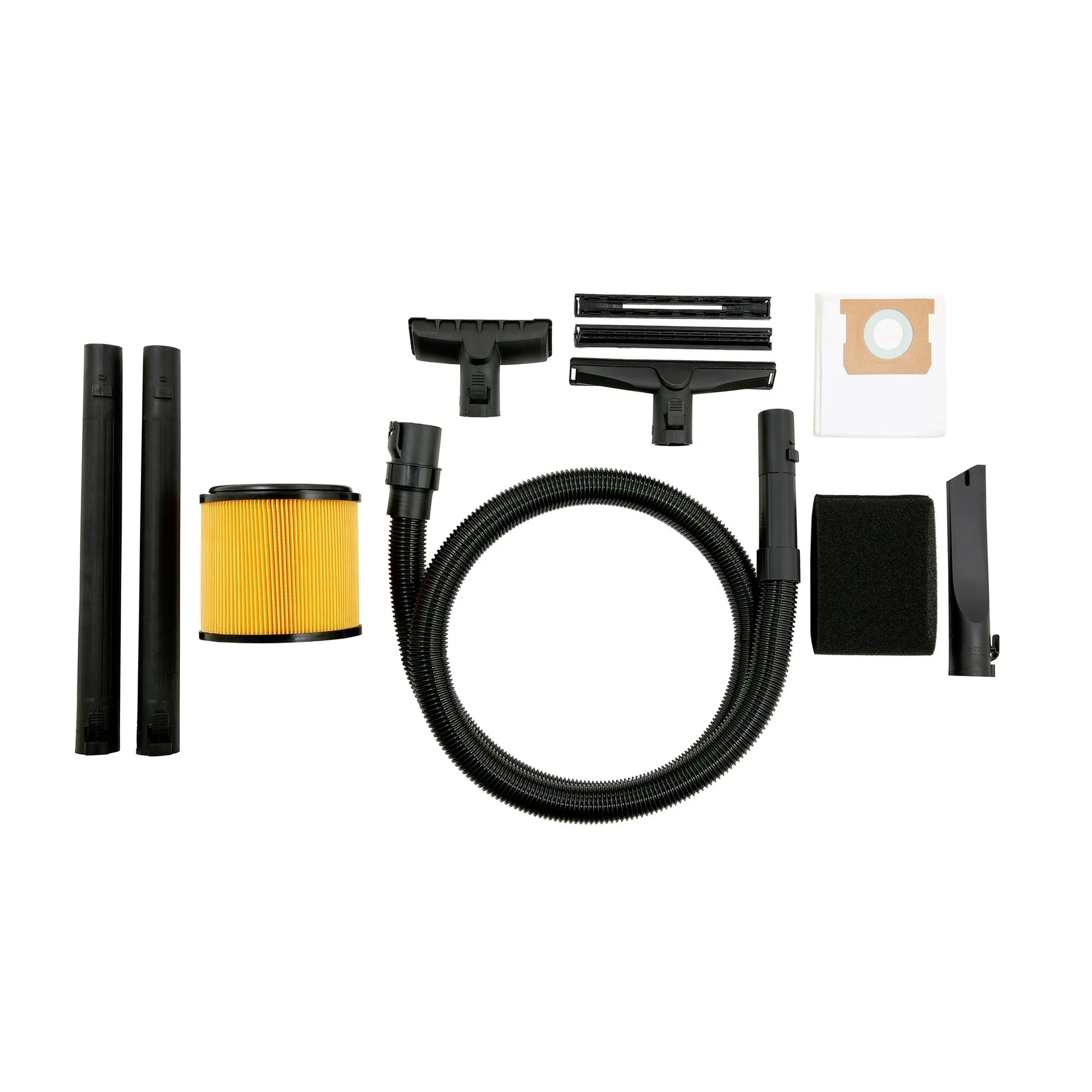 • Incluye: manguera Premium de 7' x 1-7/8", (2) varillas de extensión, boquilla de utilidad, herramienta de hendidura, boquilla de cepillo de piso / escobilla, filtro de cartucho, filtro de espuma húmeda, bolsa de colección