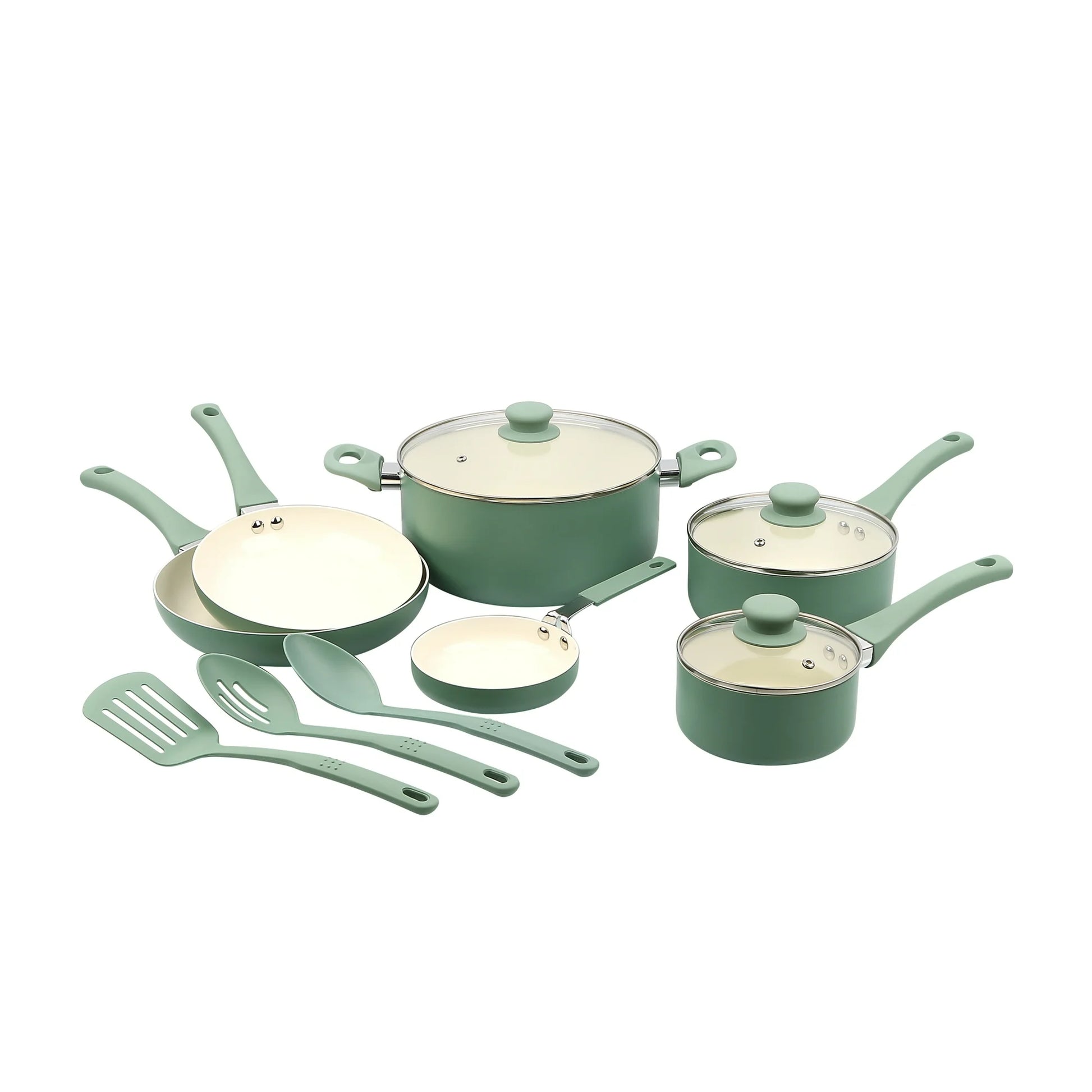 Mainstays Batería de Cocina de Aluminio Cerámico 12 Piezas Verde Antiadherente