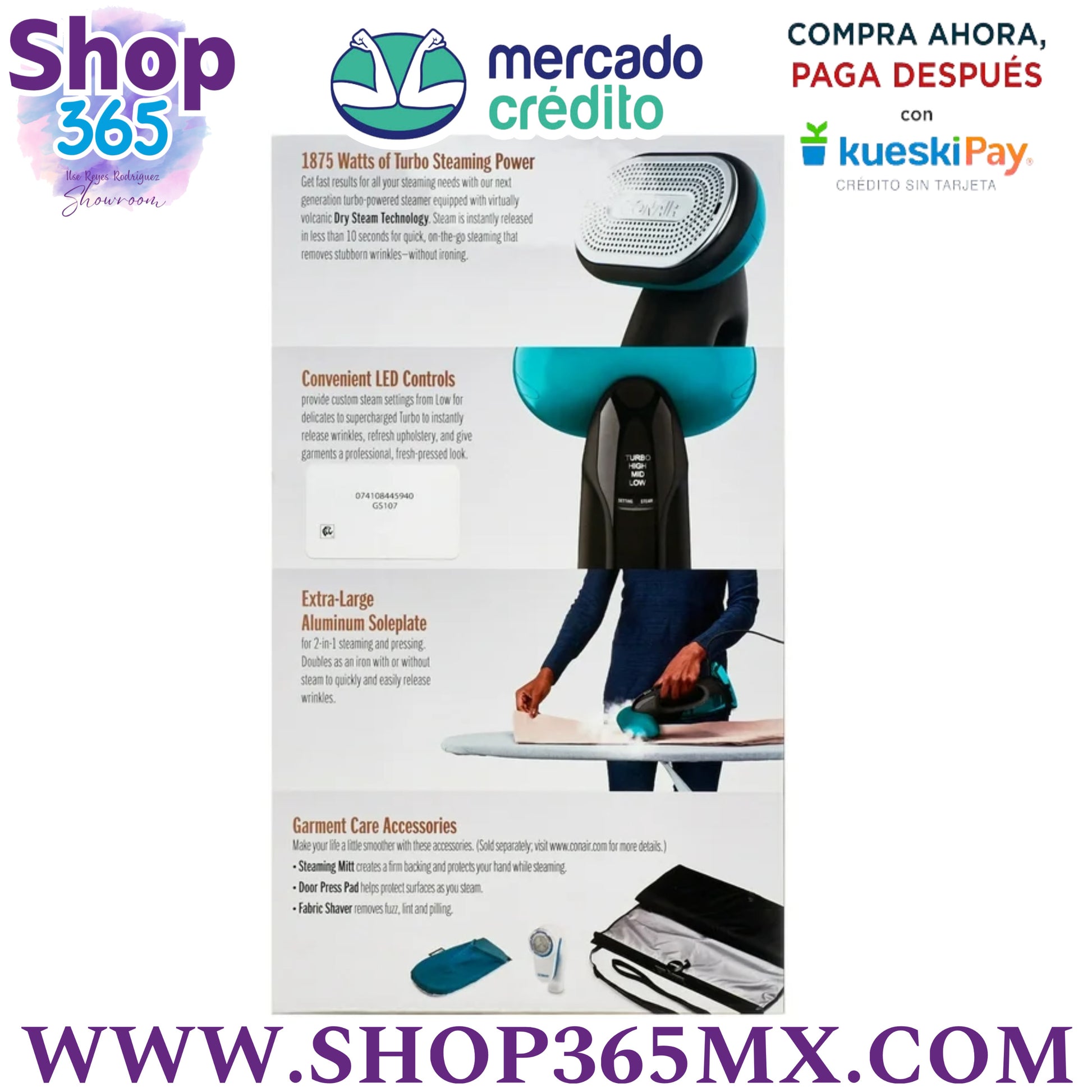 Obtenga resultados rápidos para todas sus necesidades de vaporización y planchado con el vaporizador turboalimentado de última generación y mantenga su ropa con un aspecto perfectamente planchado y un olor fresco. El vaporizador de mano más potente** diseñado con 1875 vatios de potencia, el Turbo ExtremeSteam® Steam & Iron 2-in-1 con Turbo by Conair® es un vaporizador de prendas portátil de alto calor que también funciona como plancha y se calienta casi al instante. en menos de 10 segundos y produce un 40% más de vapor†. Con un área de vapor un 62 % más grande y un 20 % más de potencia†, el alisado es más rápido y mata el 99,9 % de las bacterias*. Quite las arrugas y refresque la ropa, cortinas, ropa de cama y más con 4 configuraciones de vapor, incluido un impulso de vapor turbo, personalizado para una variedad de telas. Pase de Low para prendas delicadas a Turbo para suéteres y chaquetas pesadas. Con la capacidad de planchar y refrescar rápidamente la tela y la versatilidad de convertirla en plancha en seco, puedes lograr resultados impecablemente suaves y recién salidos de la tintorería en poco tiempo. Como el vaporizador de mano 2 en 1 más potente**, el Turbo ExtremeSteam® pone el poder del vaporizado profesional de telas en la palma de tu mano. Utilízala para planchar en vertical u horizontal aplicando la suela caliente directamente sobre los tejidos, con o sin vapor, y elimina las arrugas más fácilmente que con una plancha estándar y con resultados más rápidos y profesionales. Con la tecnología Dry Steam, el vapor se calienta y libera a través de la suela extragrande segundos después del inicio, para que puedas alisar rápidamente tu ropa arrugada. Luce siempre lo mejor posible con ropa recién planchada con la plancha y vapor Turbo ExtremeSteam® 2 en 1 con Turbo by Conair®. *Basado en informes de pruebas de terceros sobre eficacia en E. Coli cuando se usa de acuerdo con las instrucciones adjuntas. **Basado en la potencia unitaria de 1875 a octubre de 2020. †En comparación con otros vaporizadores portátiles Conair® similares. Vaporizador de mano turbo: este vaporizador 2 en 1 también funciona como plancha para eliminar las arrugas rápida y fácilmente. Úselo verticalmente como vaporizador u horizontalmente como plancha. Suaviza las arrugas al instante.Fácil de usar: esta vaporera independiente cuenta con 4 configuraciones de vapor, calentamiento de 10 segundos y tanque de agua de 8.5 onzas para hasta 10 minutos de vapor continuo. La función de seguridad del sensor inteligente detiene el vapor cuando se coloca sobre una superficie plana y comienza a vaporizar nuevamente cuando se recoge Accesorios adicionales: capó para prendas delicadas para telas finas, arrugador para pliegues y pliegues perfectos, banda de silicona 2 en 1 + cepillo de cerdas: la banda de silicona tensa las telas para obtener mejores resultados y el cepillo de cerdas garantiza que el vapor penetre en las fibras incluso en telas pesadas Vaporizadores de telas de Conair: Nuestros vaporizadores de prendas han obtenido el sello Good Housekeeping y mantienen su ropa, tapizados, cortinas y otras telas del hogar suaves y frescas. Vea toda la línea, incluidos los vaporizadores portátiles, verticales y de viaje. Cuidado innovador de la ropa: desde afeitadoras de telas y planchas tradicionales hasta vaporizadores de ropa, tanto portátiles como de tamaño completo, fabricamos accesorios para el cuidado de la ropa de alta calidad.