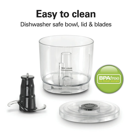 Hamilton Beach Apila y Presiona Picadora de Alimentos de 2 Velocidades, Capacidad para Tazón de 3 Tazas, 72890F