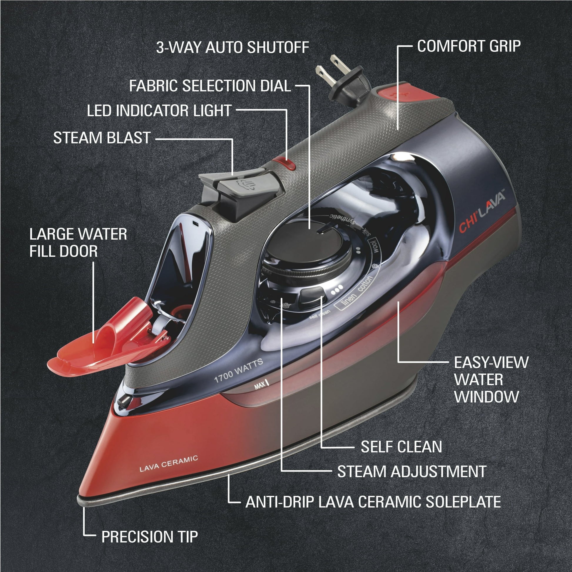CHI Lava Plancha para Ropa - Placa Base de Cerámica Lava, Cable Retráctil, Control de Vapor Ajustable