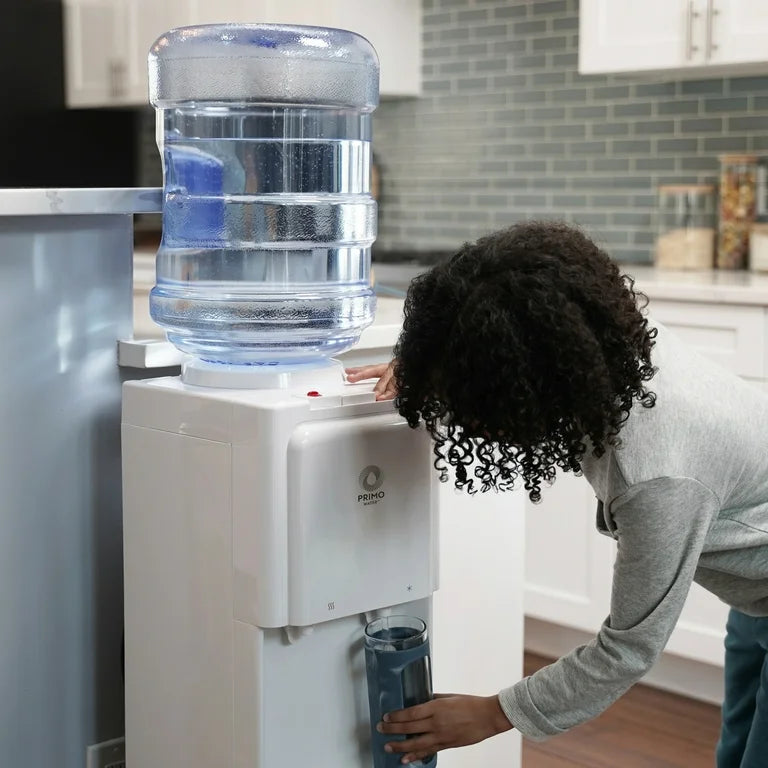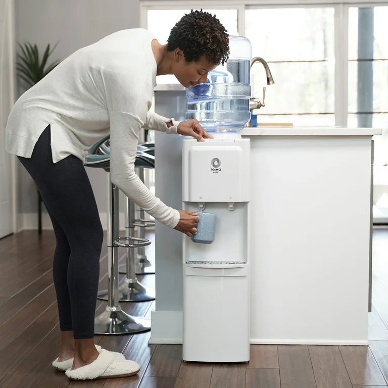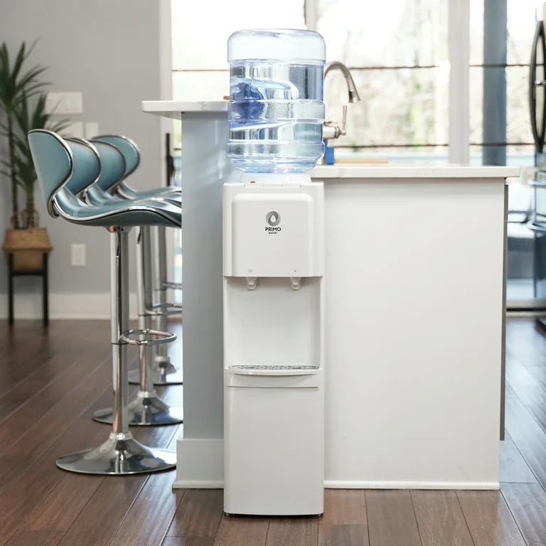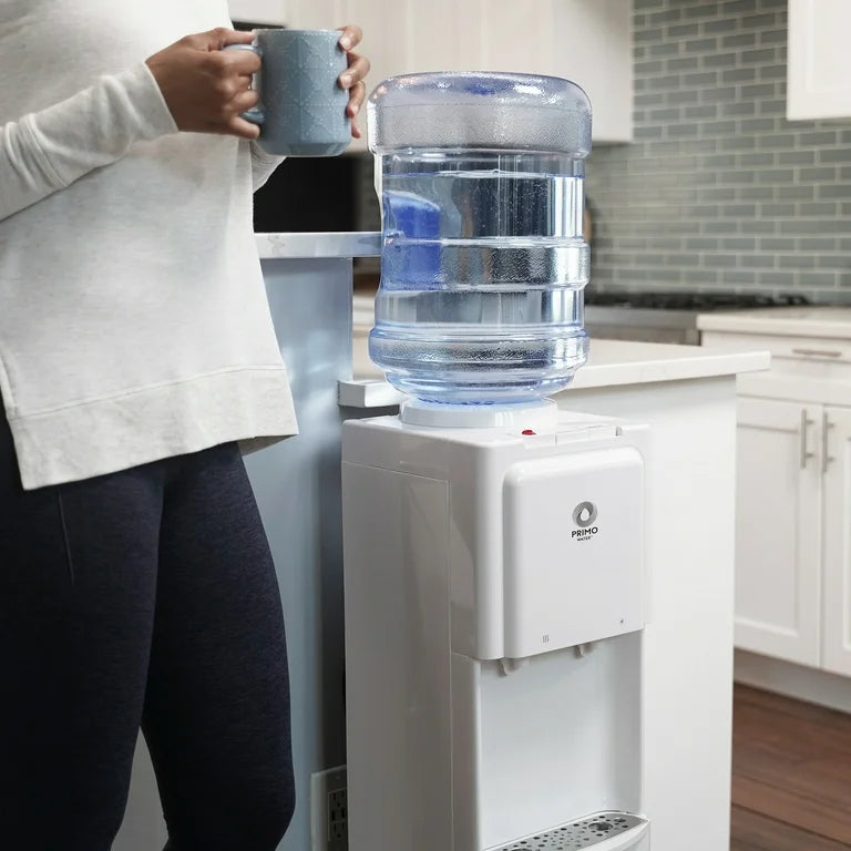 El dispensador de agua fría y caliente de carga superior Primo® brinda fácil acceso al agua fría y caliente con solo tocar un botón. Una bandeja de goteo apta para lavavajillas, funciones silenciosas de calefacción y refrigeración y una botella a prueba de derrames añaden practicidad diaria a este elegante modelo que es perfecto para hogares y oficinas. Para usarlo, simplemente cargue cualquier jarra de agua compatible de 3 o 5 galones en el dispensador y disfrute de agua refrescante, sin problemas; no se requiere plomería ni instalación complicada. Visite las convenientes estaciones de recarga e intercambio de agua Primo® de Walmart para obtener una solución de agua potable rápida, asequible y respetuosa con el medio ambiente. Nuestra agua está sometida a los más altos estándares de calidad. Primo® Water se purifica con un proceso de ósmosis inversa de varios pasos para garantizar agua potable pura, refrescante y libre de contaminantes. Las botellas de agua Primo® también se inspeccionan y desinfectan minuciosamente después de cada reciclaje. Las dimensiones del producto ensamblado miden 12,50 pulgadas de largo por 10,80 pulgadas de ancho por 36,60 pulgadas de alto y el peso es de 25 libras. Dispensa 2 temperaturas: agua fría y caliente. Portabotellas a prueba de derrames y sin complicaciones con protector contra fugas Controles de botón con función de seguridad para niños Sin filtros que mantener Refrigeración y calefacción silenciosas Instalación rápida y sencilla, no requiere plomería Bandeja de goteo extraíble y apta para lavavajillas Diseñado para usar con botellas Primo® Water de 3 y 5 galones