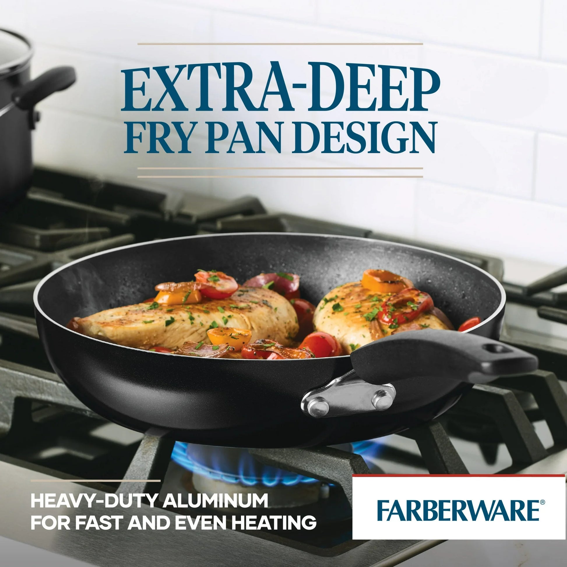 Freír, saltear y dorar con el Farberware Easy Clean aluminio antiadherente sartén profunda de 2 piezas Set, que reúne función, valor y un montón de corazón. Fabricadas en aluminio resistente y duradero para una calefacción rápida y uniforme, estas sartenes de 10.5 pulgadas y 12 pulgadas están diseñadas para hacer que la cocina diaria se sienta sin esfuerzo y la limpieza sea aún más fácil. Su tamaño profundo los hace ideales para todo, desde simples platos abrasadores hasta fritos, y ambos cuentan con un mango robusto y de doble remache para un agarre seguro y cómodo. Los interiores antiadherentes de larga duración ofrecen una liberación suave de alimentos, y los exteriores coloridos agregan un poco de personalidad a su cocina. Farberware cree que la comida siempre sabe mejor cuando se comparte, y que los mejores recuerdos se hacen en la cocina, una comida a la vez.