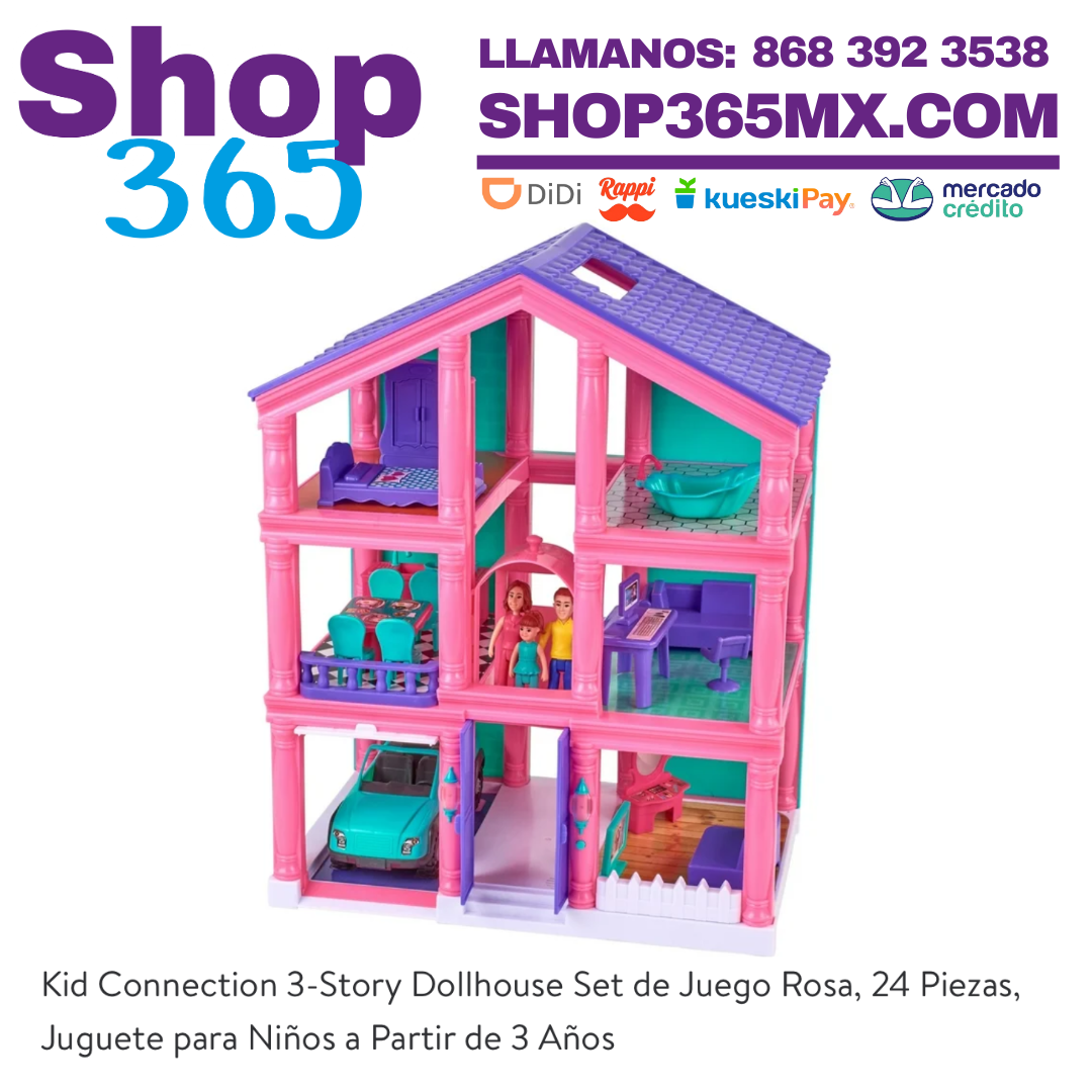 Kid Connection 3-Story Dollhouse Set de Juego Rosa, 24 Piezas, Juguete para Niños a Partir de 3 Años