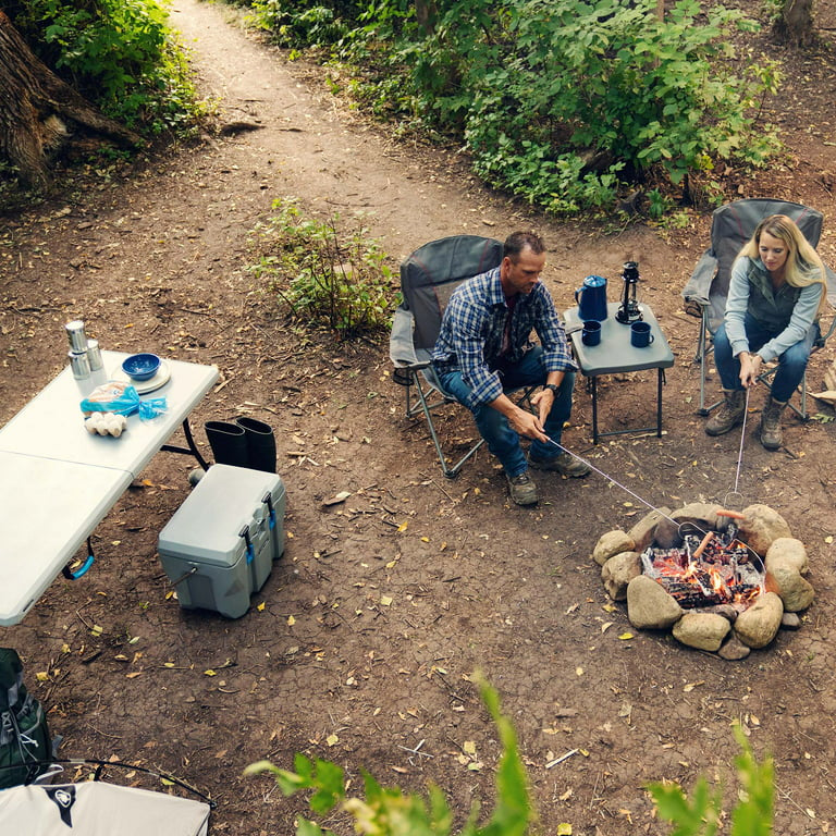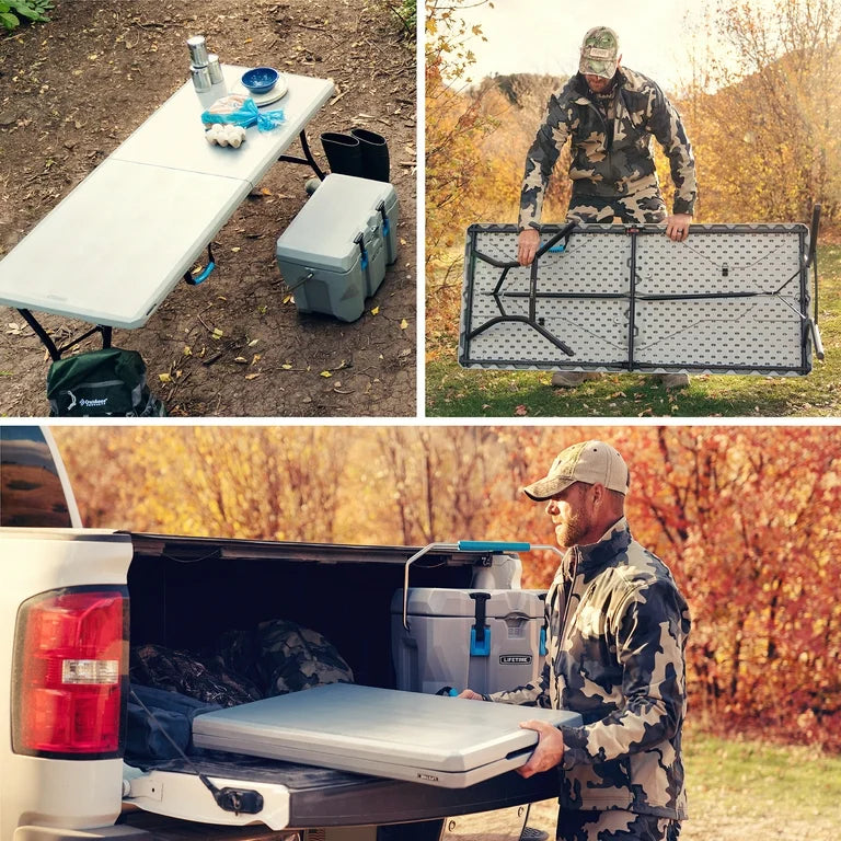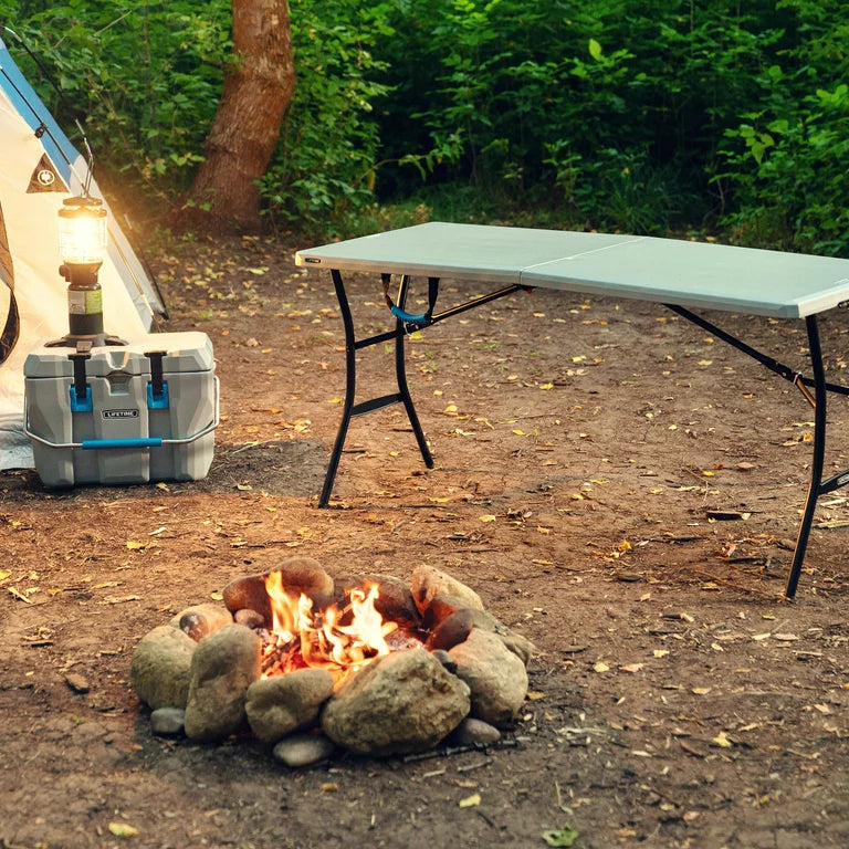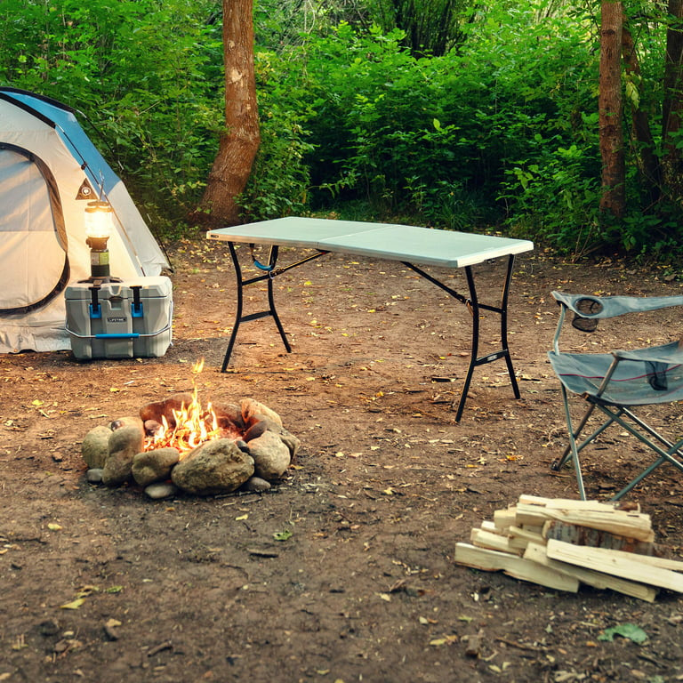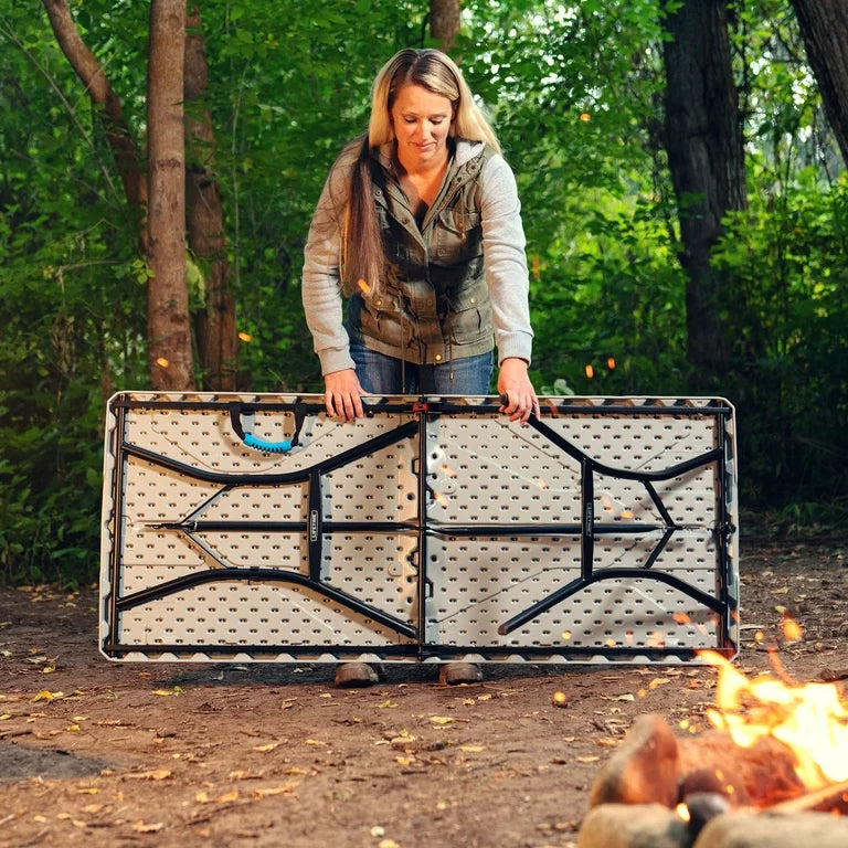 La mesa plegable por la mitad de 5 pies de Lifetime es el par perfecto para su refrigerador Lifetime. Ya sea que esté pasando dificultades en un viaje de campamento o saliendo con sus amigos y familiares, esta mesa es el lugar ideal para comer y beber. Esta mesa forma parte de la línea robusta y presenta un diseño compacto plegable por la mitad y asas que la hacen ideal para excursiones al aire libre. La protección UV, la resistencia a la intemperie y a las manchas equipan a la mesa para un uso intensivo. Los bordes y esquinas resistentes a los impactos protegen la mesa de daños para que mantenga su apariencia y utilidad. El marco de acero proporciona una base sólida con recubrimiento en polvo y un acabado resistente a la intemperie. La mesa plegable por la mitad de 5 pies de Lifetime es una excelente mesa para el día del juego o cualquier aventura al aire libre. Mesa rectangular plegable por la mitad Lifetime de 5 pies, esencial para interiores y exteriores, granito blanco (80861): Se pliega por la mitad para facilitar su transporte y almacenamiento. Bordes resistentes a abolladuras Uso interior/exterior Diseño liviano Superficies fáciles de limpiar y de bajo mantenimiento Marco de acero con recubrimiento en polvo resistente al óxido. Mecanismo de bloqueo de seguridad Postura estable de piernas anchas Resistente a las manchas y fácil de limpiar Resistencia y durabilidad superiores Parte superior de polietileno de alta densidad (HDPE) con protección UV Polietileno de alta densidad resistente a la intemperie