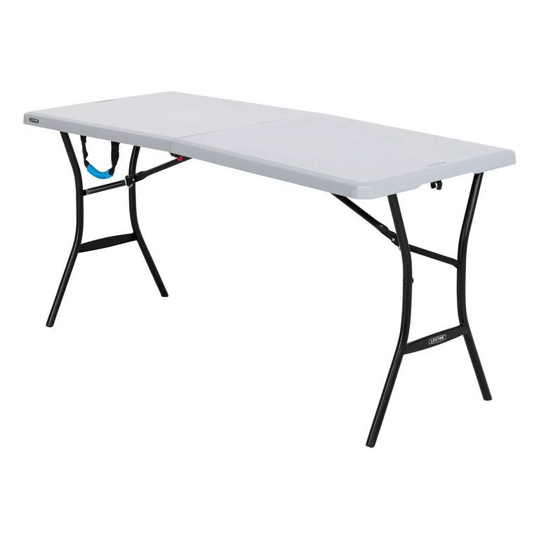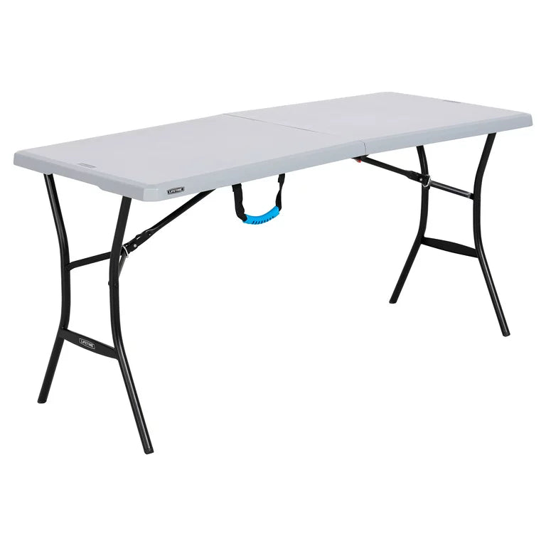 Lifetime Mesa rectangular plegable por la mitad de 5 pies, esencial para interiores y exteriores, gris, 153cm x 65cm (80861)