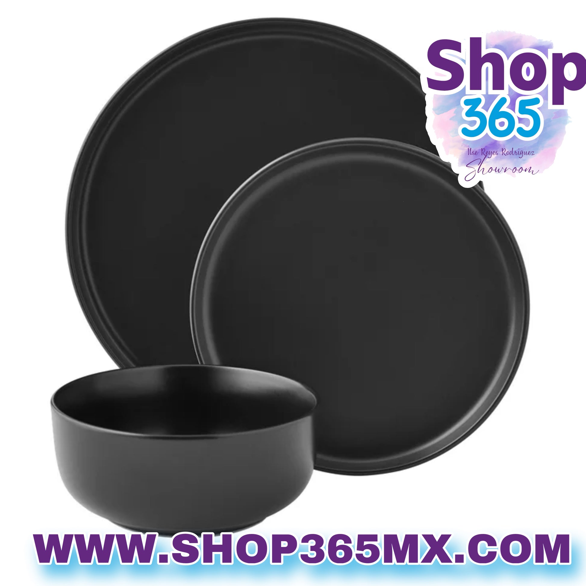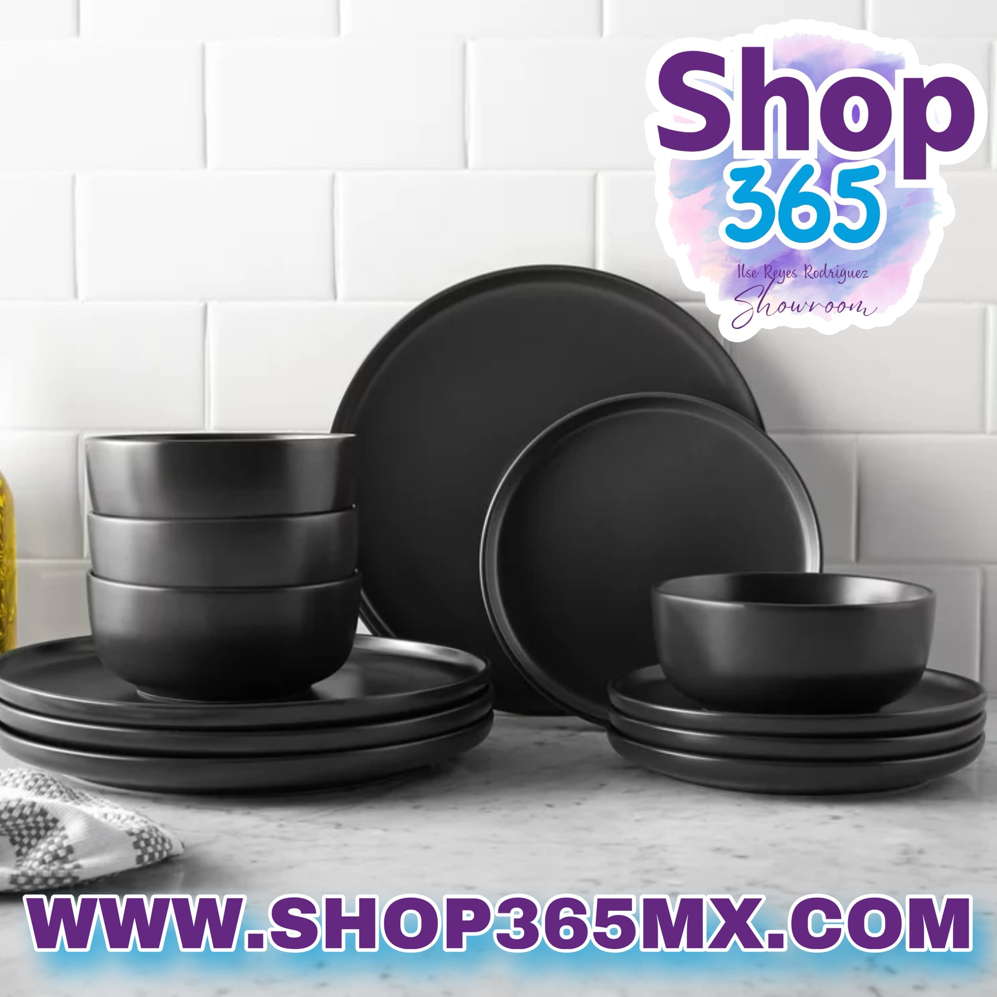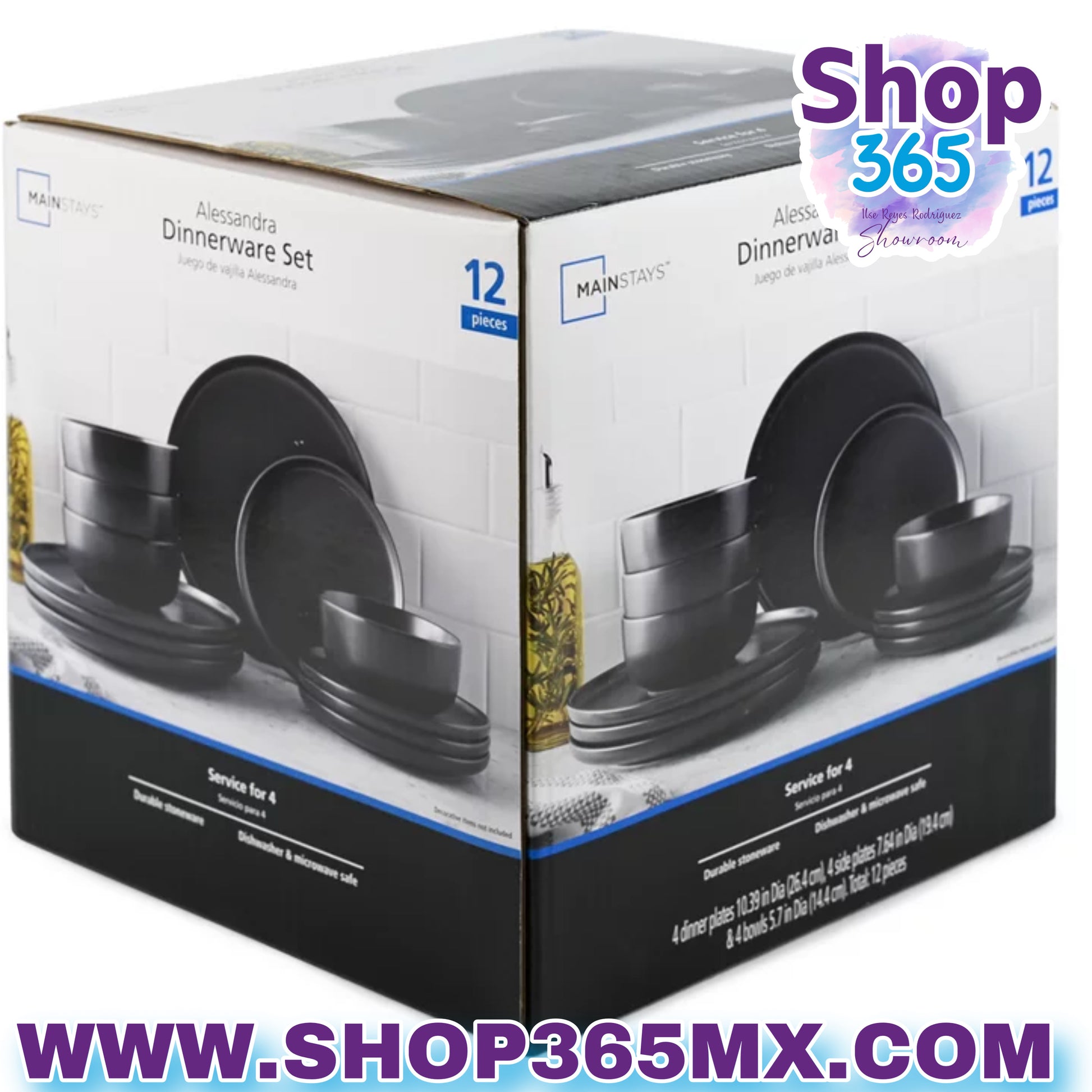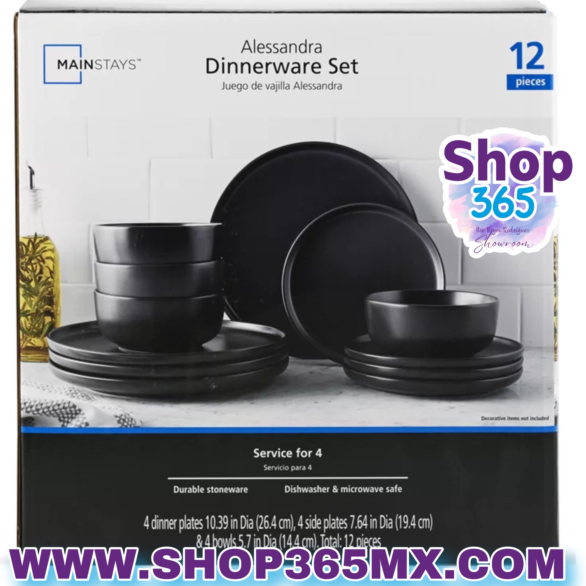 Mainstays Alessandra Juego de vajilla de gres negro mate de 12 piezas