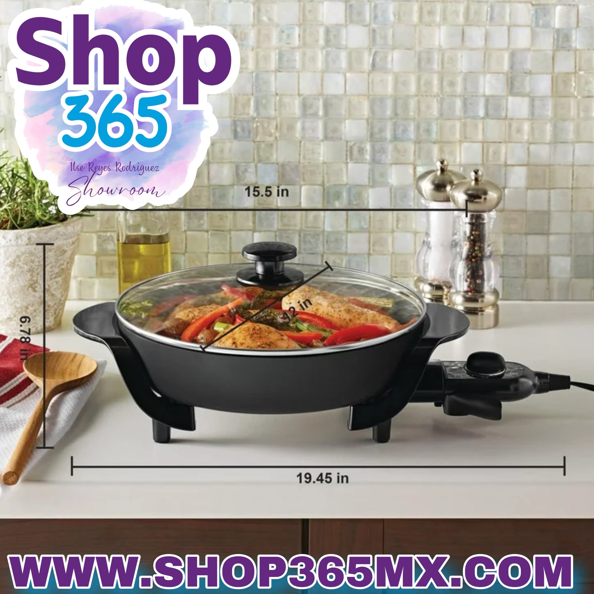 - Mainstays Sartén eléctrica versátil de 12" con control de temperatura ajustable y cubierta de vidrio