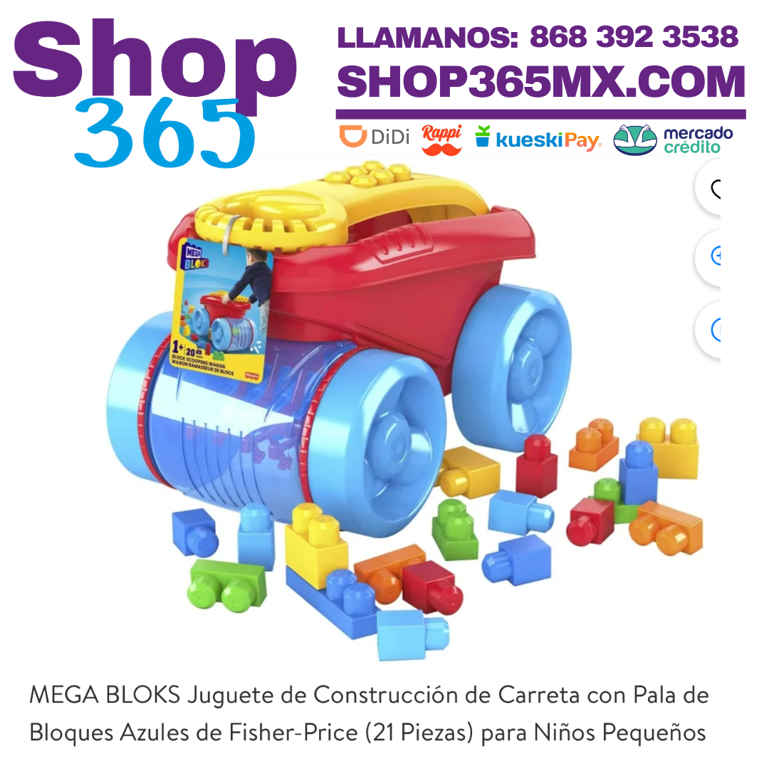MEGA BLOKS Juguete de Construcción de Carreta con Pala de Bloques Azules de Fisher-Price (21 Piezas) para Niños Pequeños