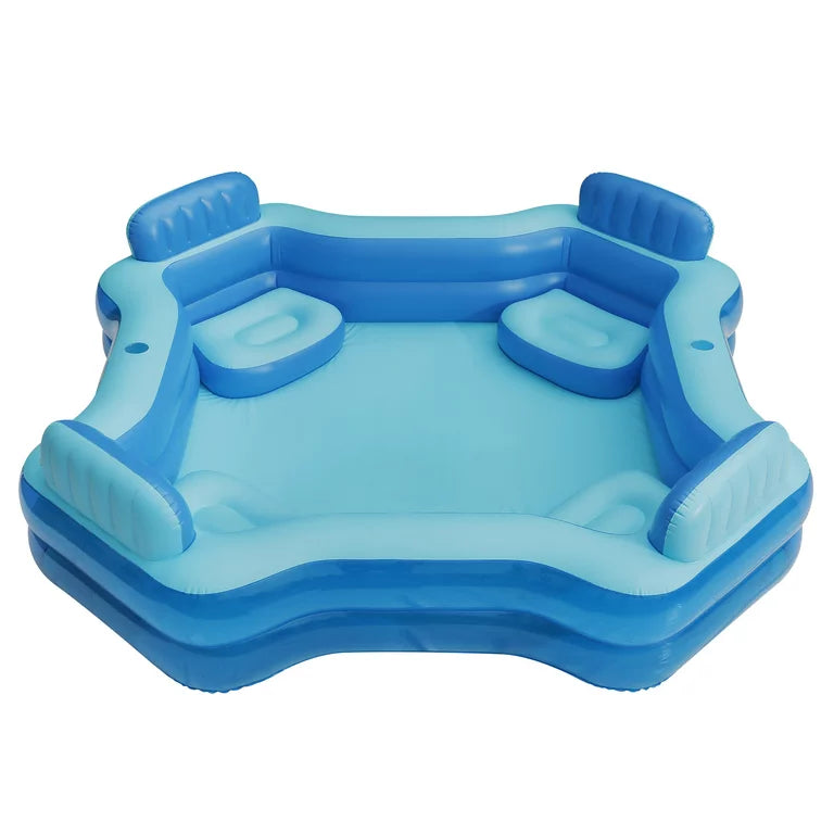 La diversión con toda la familia te espera con la piscina Bluescape Deluxe Comfort. Esta piscina inflable duradera está fabricada con materiales resistentes a pinchazos y cuenta con una construcción de 2 niveles y válvulas eficientes para una fácil instalación. Con 4 asientos acolchados con respaldo, podrás sentarte cómodamente dentro de la piscina. También hay 2 portabebidas para mantener tus refrescos cómodamente a tu lado. Simplemente llénala con agua y todos estarán encantados de nadar en esta gran piscina familiar. Piscina familiar inflable Bluescape Blue Deluxe Comfort, 4 asientos, 6 años en adelante Capacidad para 4 personas con 4 respaldos y asientos acolchados. 2 portavasos para tener las bebidas a mano Diseño simplista en azul y blanco. 10 cámaras de aire Válvulas 2 en 1 para inflar/desinflar fácilmente Materiales duraderos y resistentes a pinchazos. Parche de reparación incluido Forma de la piscina: Cuadrada Tipo de piscina: Inflable Tamaño desinflado aproximado: 104" x 104" (2,64 m x 2,64 m) Tamaño inflado aproximado: 105” x 105” x 26” (2,67 m x 2,67 m x 66 cm) Edad: 6+