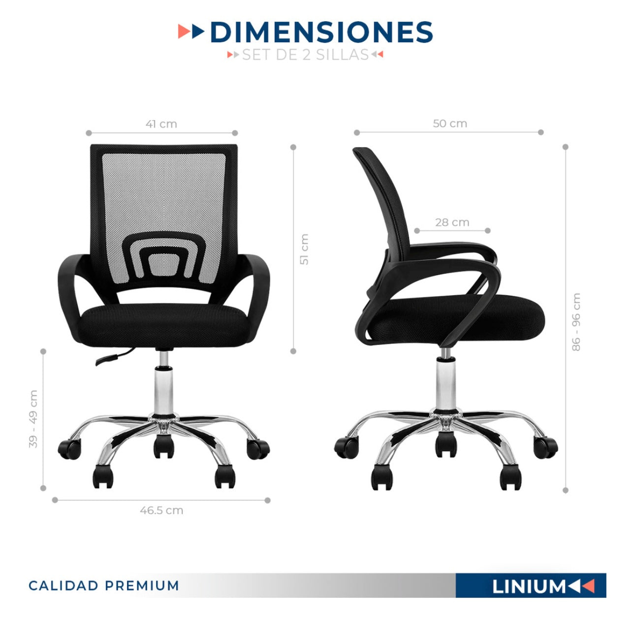 Silla para oficina escritorio ergonomica Premium Set 2 piezas color negro material de tapizado malla