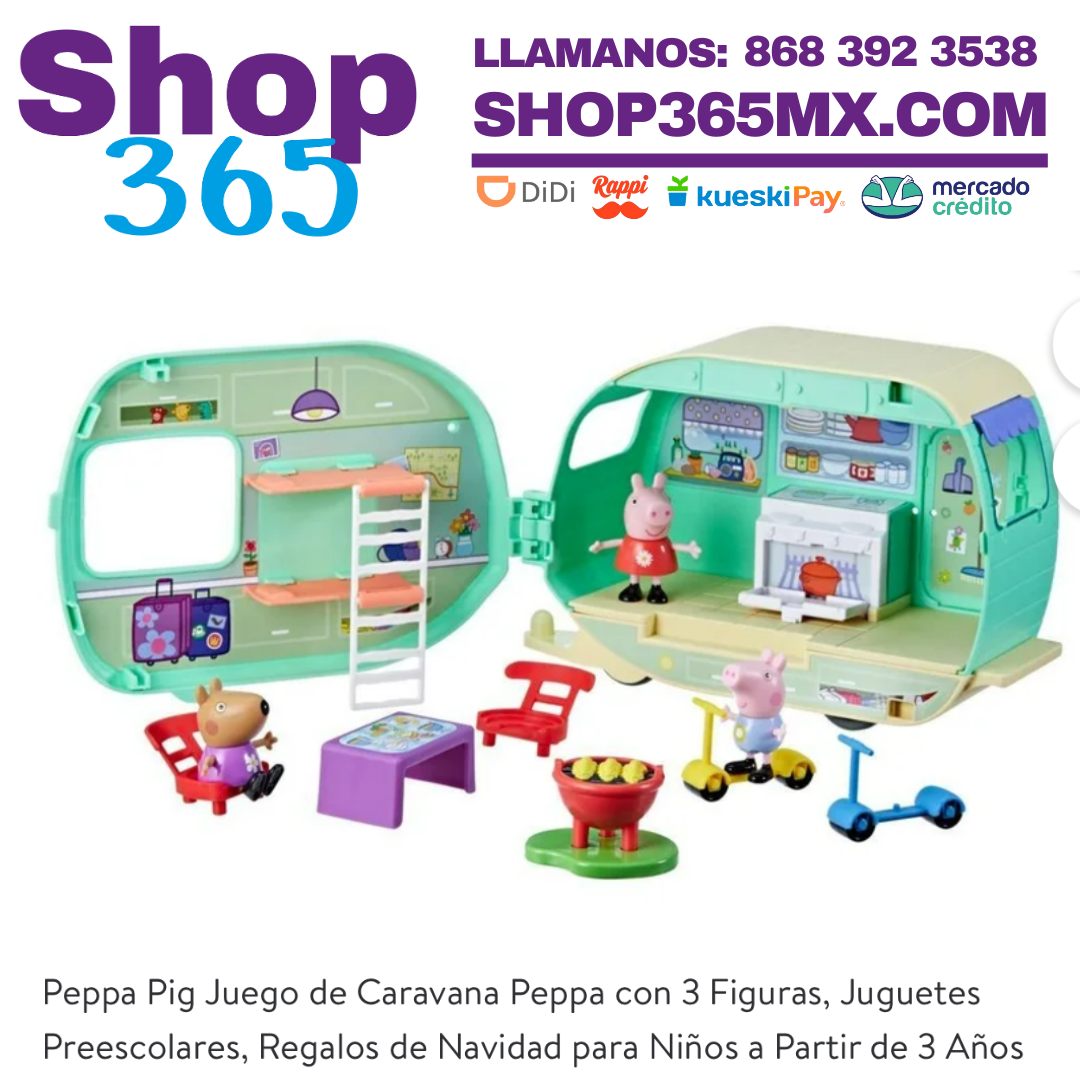 Peppa Pig Toys Juego de Caravanas de Peppa con 3 Figuras, Juguetes Preescolares para Edades 3+