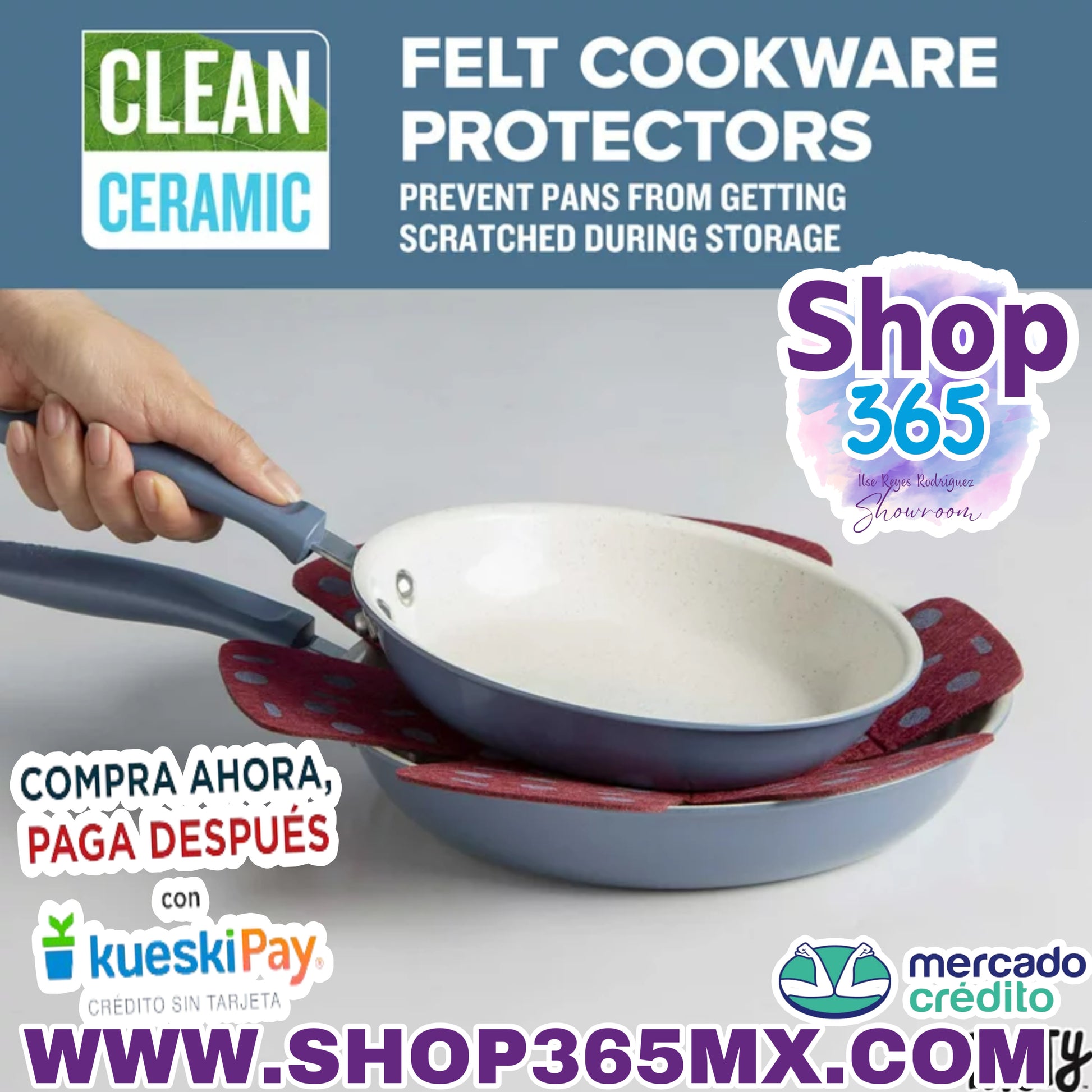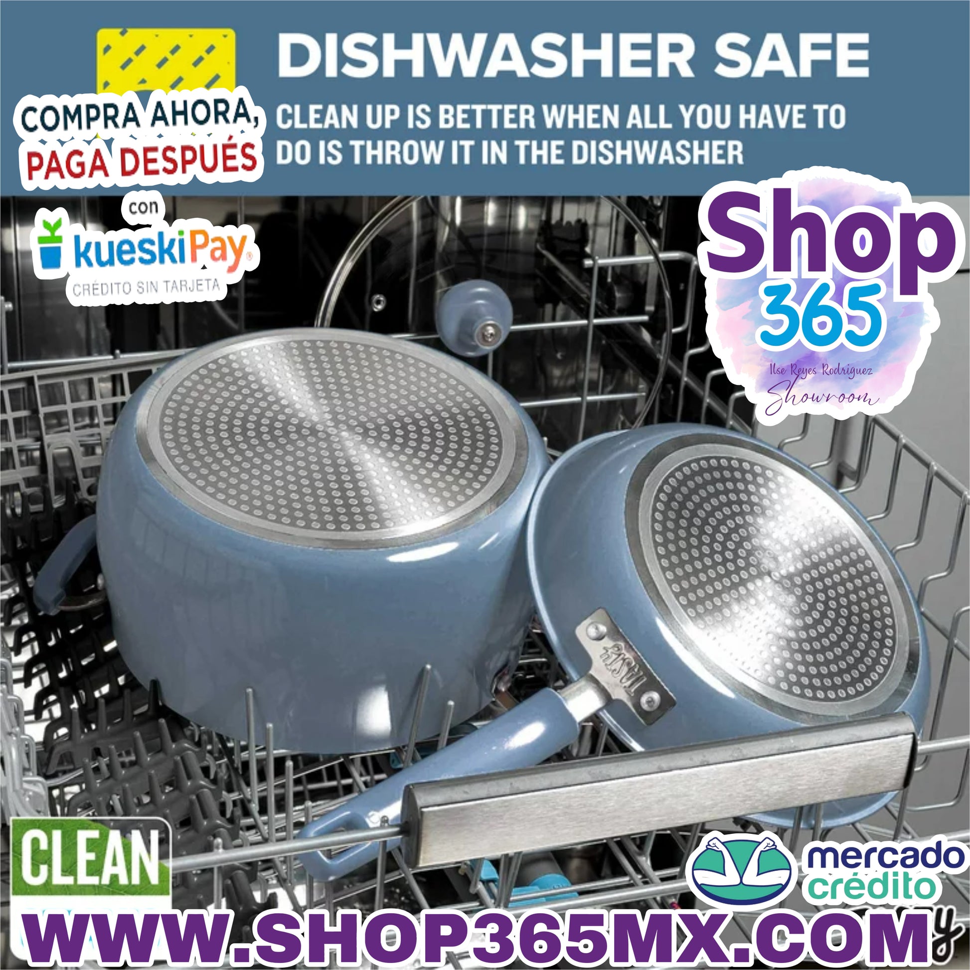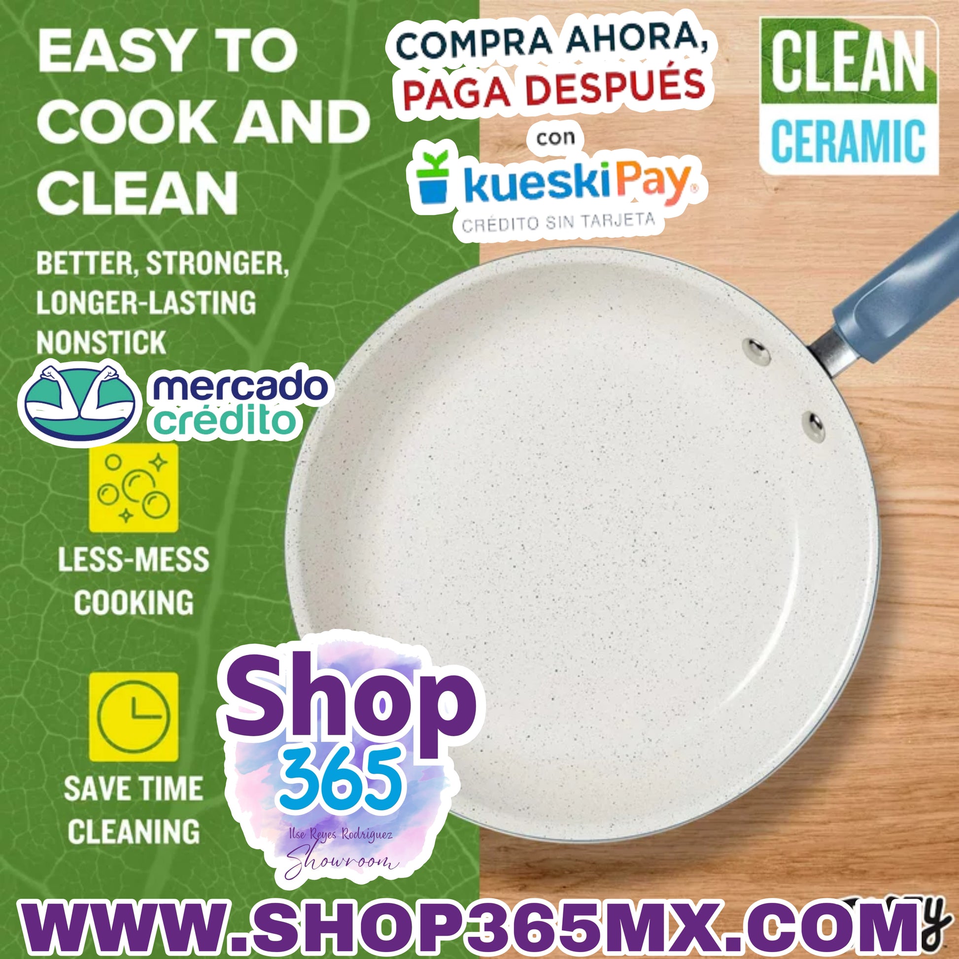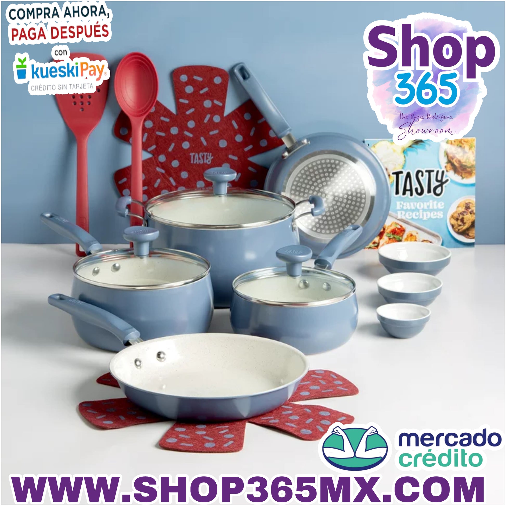 Todo lo que necesitas para tu cocina en una sola caja! Prepare su cocina para el éxito con este juego de utensilios de cocina antiadherentes de 16 piezas Tasty Clean Ceramic. El revestimiento antiadherente Clean Ceramic reforzado, mejor, más resistente y duradero, permite que los alimentos se deslicen fácilmente fuera de la sartén. El revestimiento antiadherente está fabricado sin PFAS, PFOA, PTFE ni PFOS para una cocina saludable. Cuando desee guardar estas ollas y sartenes, utilice los protectores de sartenes incluidos para colocarlos entre dos piezas de utensilios de cocina y permitir apilarlos y almacenarlos sin rayarlos. Los utensilios de cocina también cuentan con una base de inducción de acero inoxidable, lo que los hace adecuados para todas las superficies de cocción, incluidas las de inducción, eléctricas, de gas y de vidrio. Antiadherente mejor, más fuerte y más duradero: este juego de ollas y sartenes cuenta con un revestimiento antiadherente Clean Ceramic reforzado de primera calidad que permite que los alimentos se deslicen fácilmente fuera de la sartén. Cocina Saludable: El revestimiento antiadherente cerámico está fabricado sin PFAS, PFOA, PTFE y PFOS Seguro para utensilios de metal: el duradero antiadherente es seguro para utensilios de metal, aunque recomendamos usar herramientas de silicona, madera o nailon al cocinar. Apto para lavavajillas para una fácil limpieza: estas sartenes son tan fáciles de limpiar como de usar y son aptas para lavavajillas para una limpieza rápida y sencilla. Calidad impresionante: la construcción resistente de este utensilio de cocina se calienta rápida y uniformemente Adecuado para todas las superficies de cocción: ¡Utilice estos utensilios de cocina en inducción, electricidad, gas y vidrio! Las ollas y sartenes cuentan con una base de inducción de acero inoxidable. Una pizca de esto: use los tazones de cerámica incluidos para medir previamente los ingredientes y preparar salsas con anticipación para que cocinar sea muy fácil; viene en tamaños de 6 onzas, 4 onzas y 2 onzas. Las herramientas adecuadas para el trabajo: el volteador y la cuchara son resistentes al calor y seguros para usar en superficies antiadherentes. Apilar y proteger: los protectores de utensilios de cocina incluidos (11,5 pulgadas y 13,5 pulgadas) son perfectos para apilar y almacenar utensilios de cocina sin preocuparse por los rayones. Incluye: sartén de 8 pulgadas, sartén de 9,5 pulgadas, cacerola de 1,5 cuartos con tapa de vidrio, cacerola de 2,5 cuartos con tapa de vidrio, horno holandés de 5 cuartos con tapa de vidrio, 2 protectores para utensilios de cocina (11,5 pulgadas y 13,5 pulgadas), cuchara sólida, ranurada volteador, tazones de preparación de cerámica de 3 piezas (6 onzas, 4 onzas y 2 onzas)