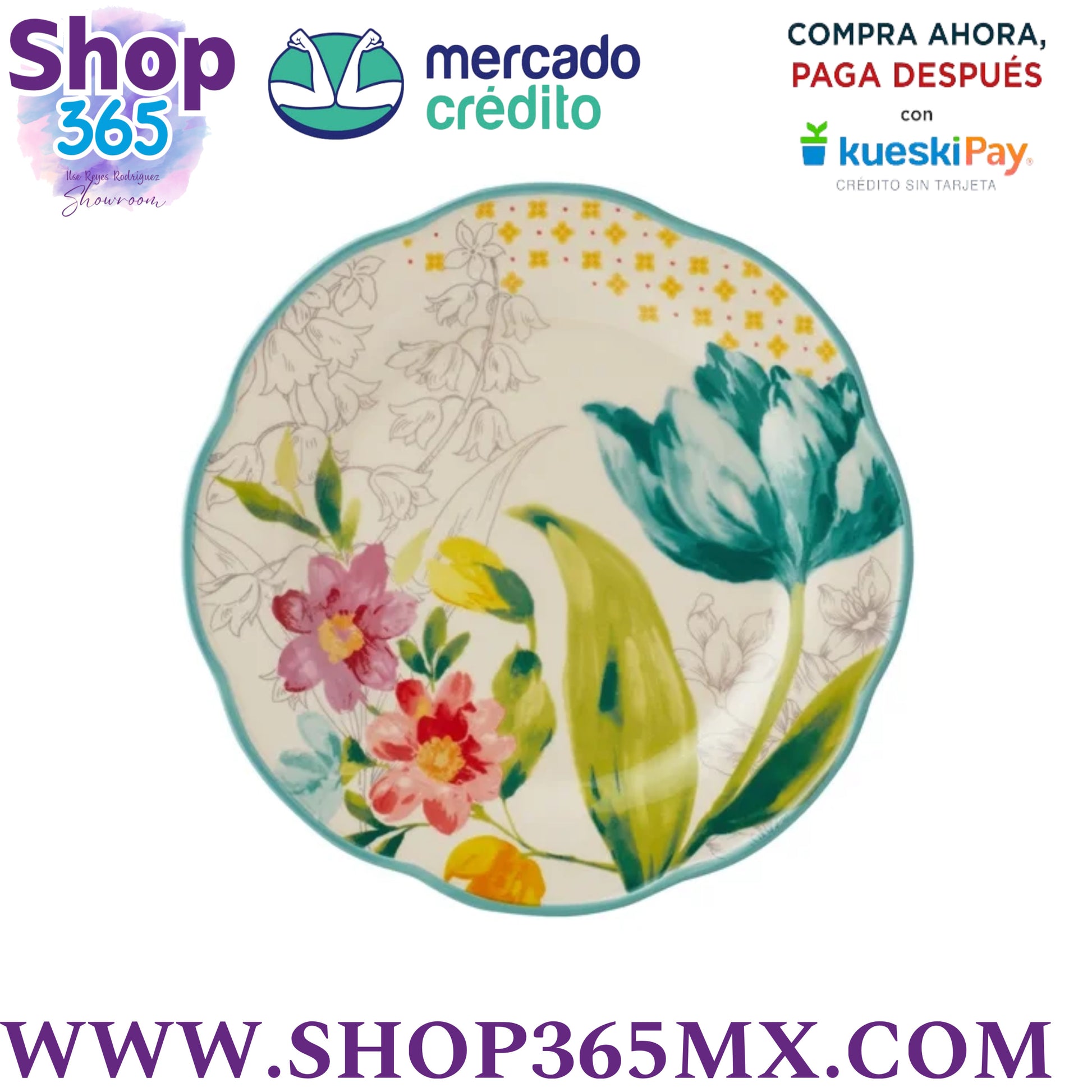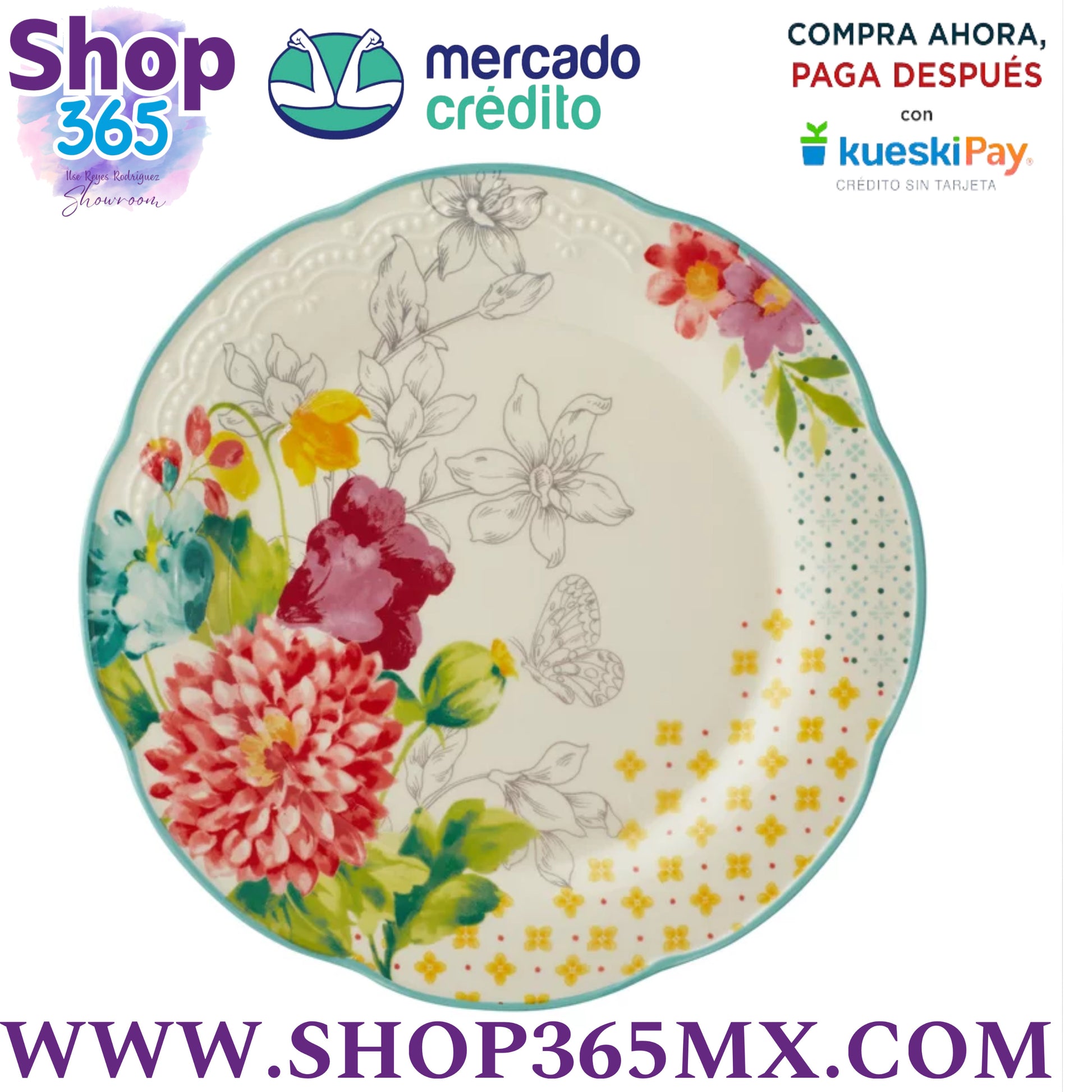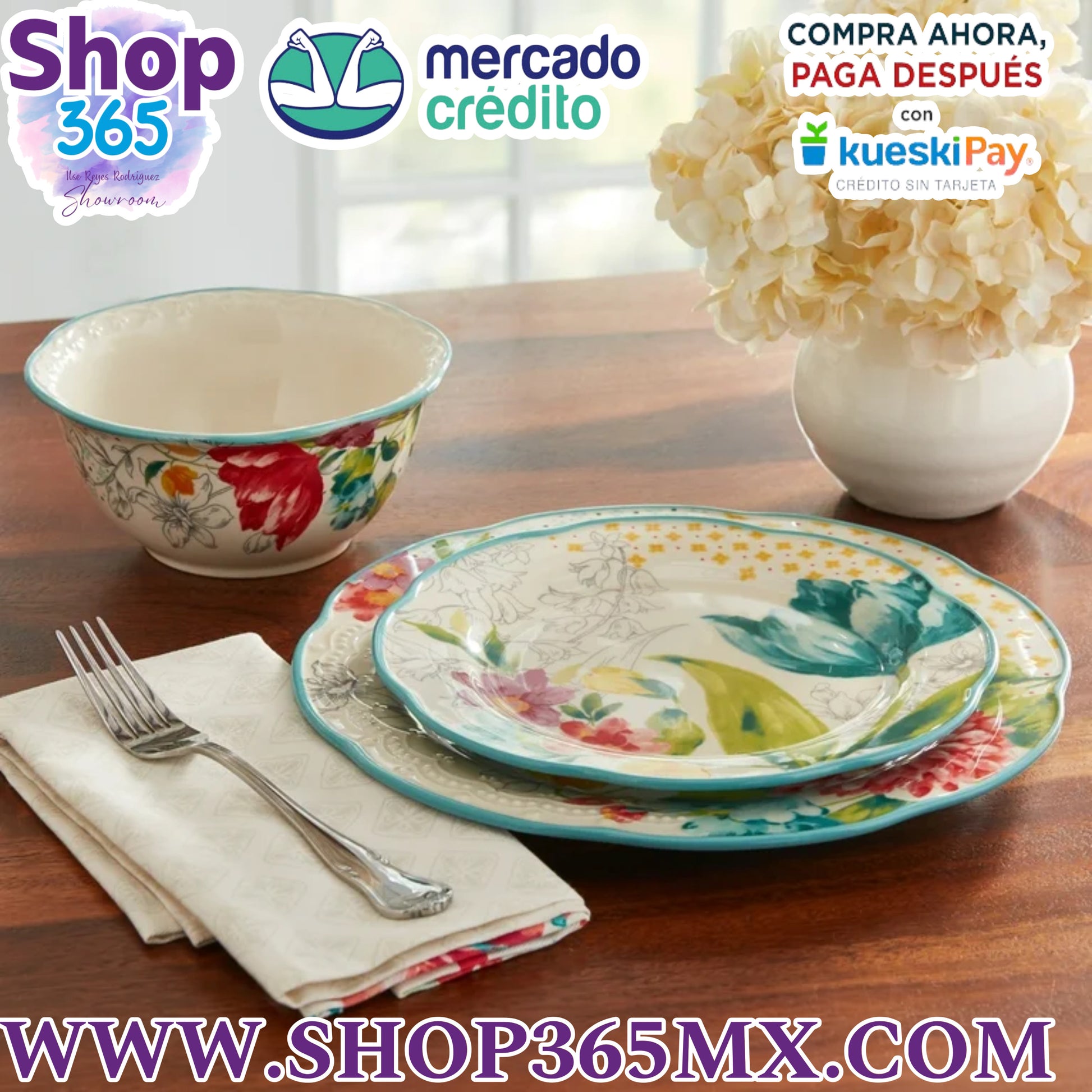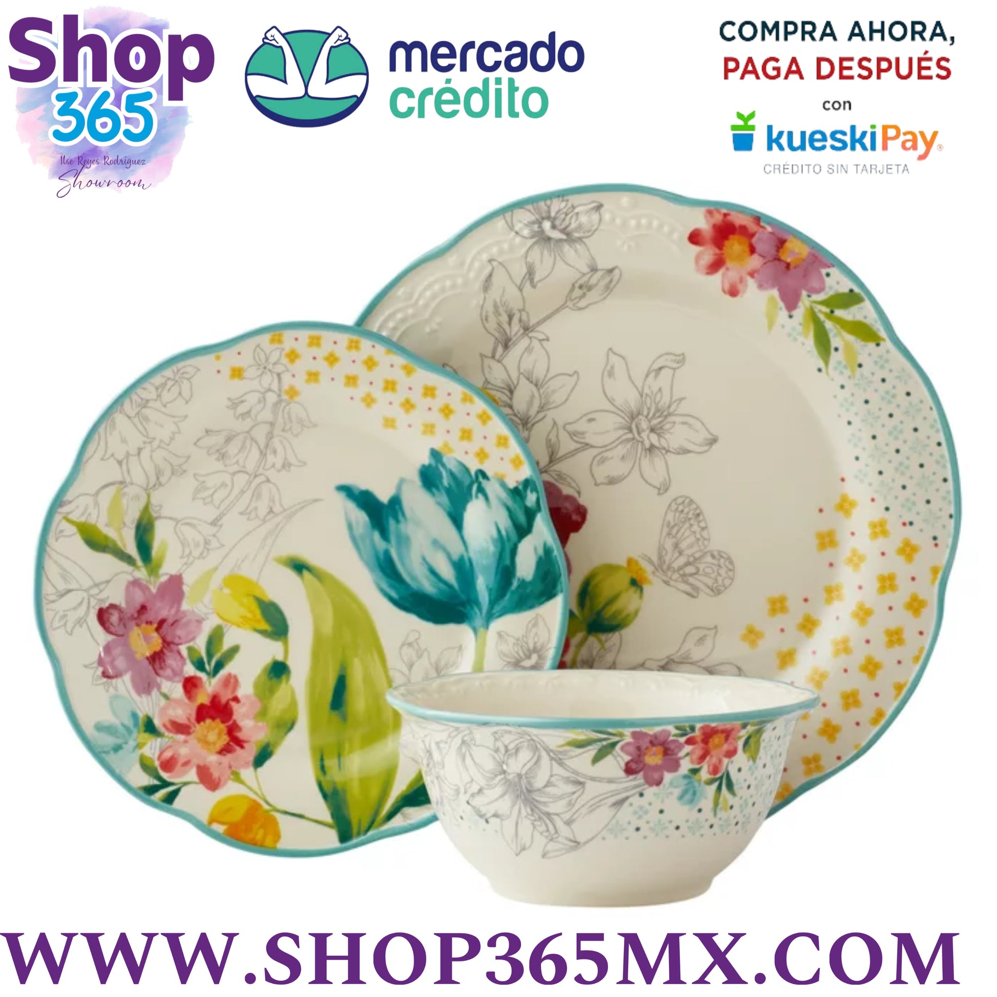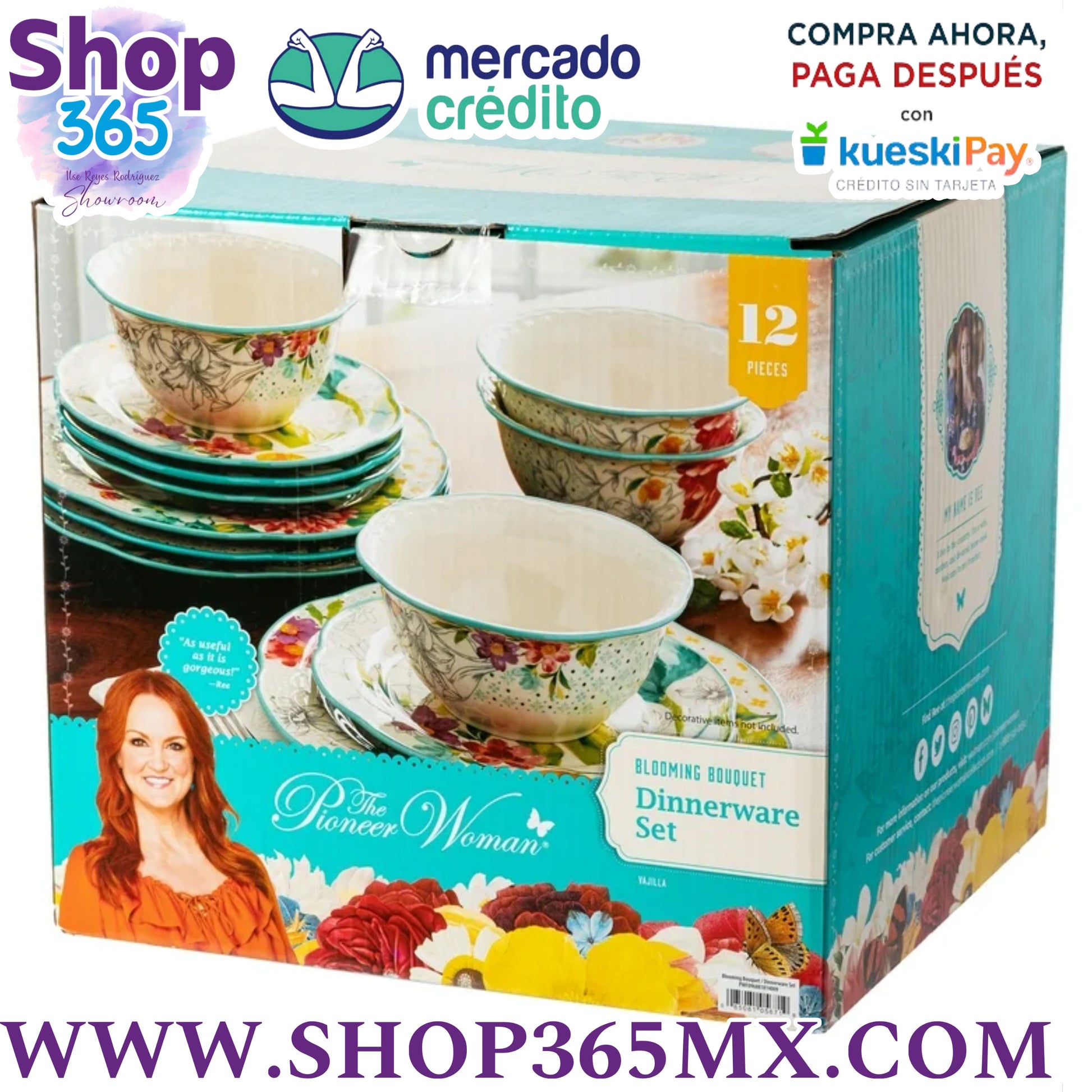The Pioneer Woman Juego de Vajilla de 12 Piezas con Ramo Floral