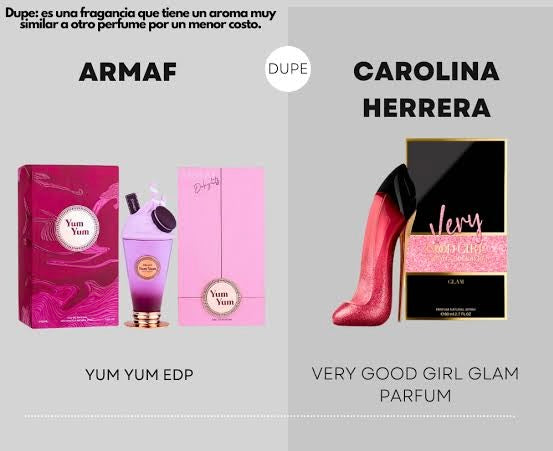Yum Yum de Armaf es una fragancia de la familia olfativa Floral Frutal para Mujeres. Esta fragrancia es nueva. Yum Yum se lanzó en 2024. Las Notas de Salida son bayas silvestres, cereza, naranja y bergamota; las Notas de Corazón son vainilla, flores blancas y rosa; las Notas de Fondo son notas atalcadas, almizcle y ámbar.